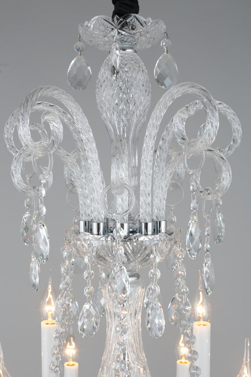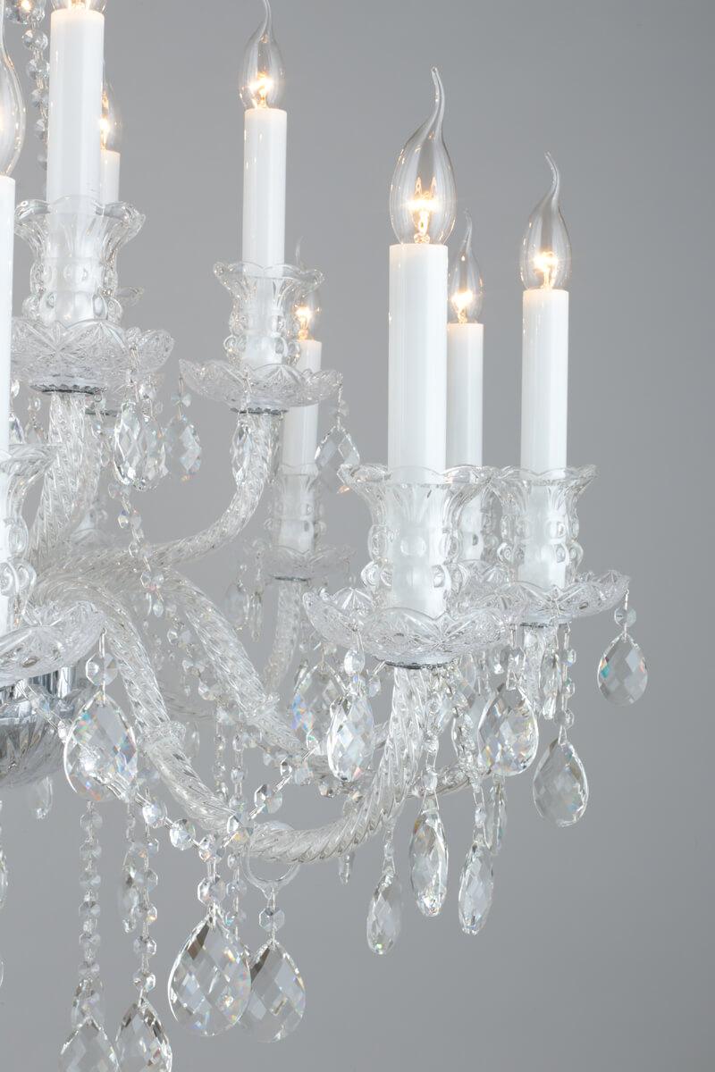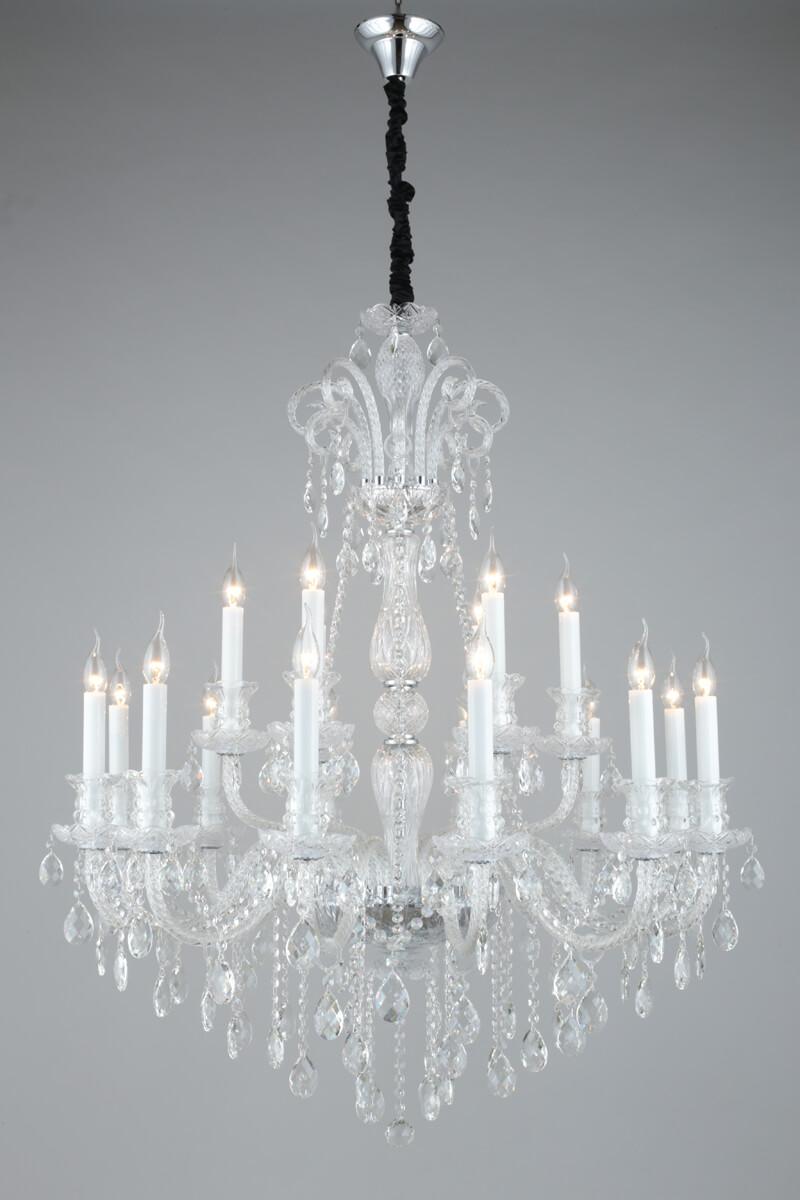 Производитель светильника рекомендует для устройства 18 ламп накаливания с цоколем E14 и мощностью 60 W, что позволит осветить помещение площадью 54 кв.м. Габариты изделия: высота – 1900 мм, диаметр – 1050 мм.