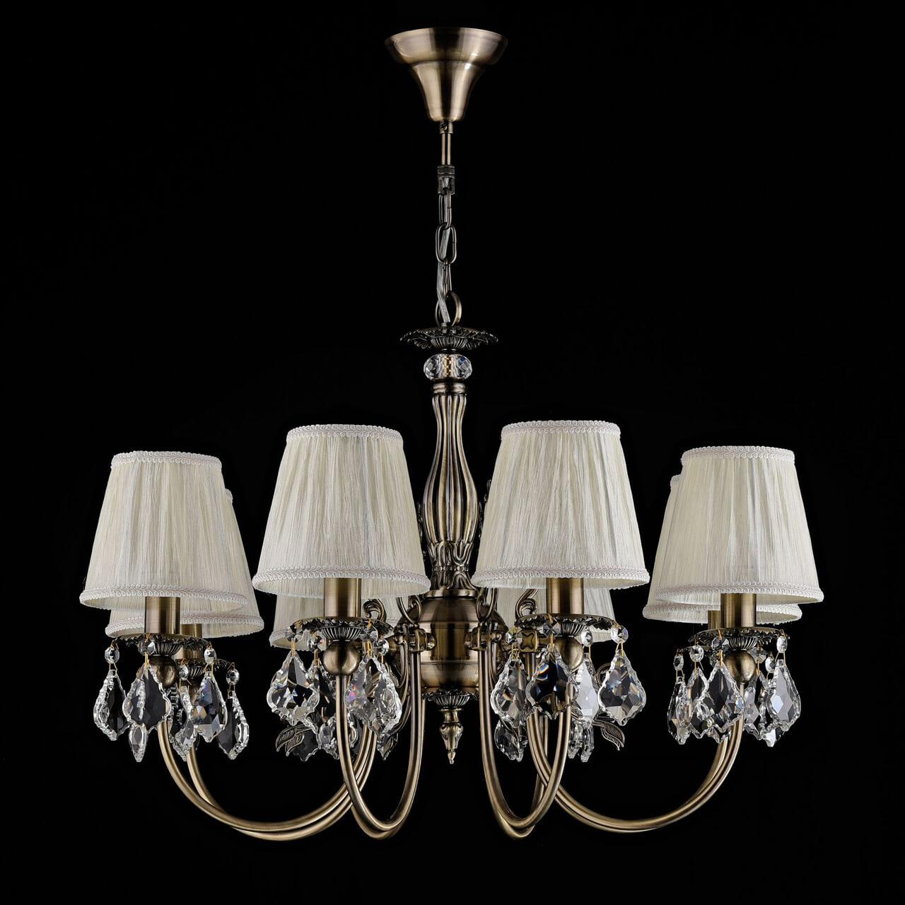 Производитель светильника рекомендует для устройства 8 ламп накаливания с цоколем E14 и мощностью 60 W, что позволит осветить помещение площадью 26,7 кв.м. Габариты изделия: высота – 980 мм, диаметр – 660 мм.