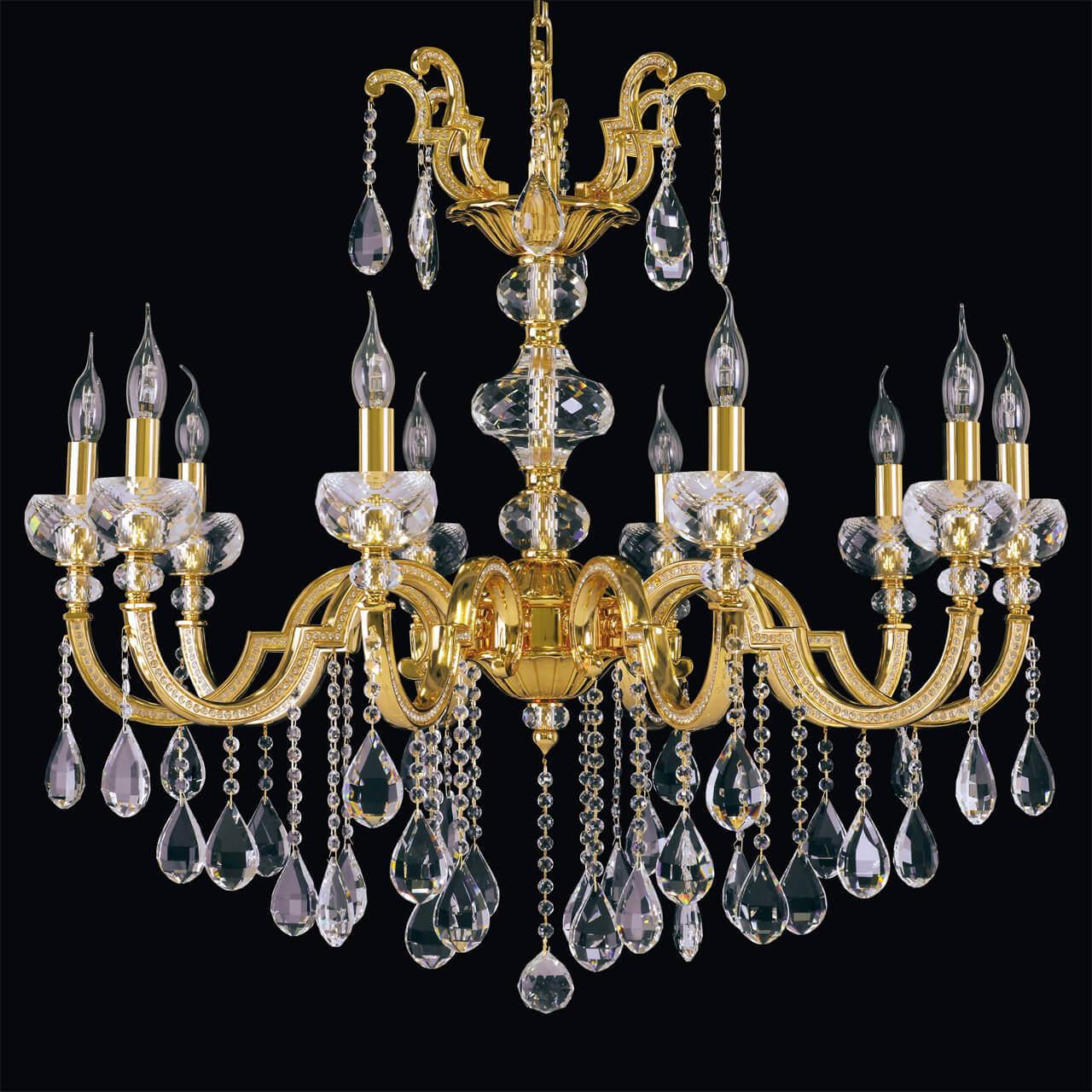 Производитель светильника рекомендует для устройства 10 ламп накаливания с цоколем E14 и мощностью 60 W, что позволит осветить помещение площадью 33,3 кв.м. Габариты изделия: высота – 2000 мм, диаметр – 880 мм.