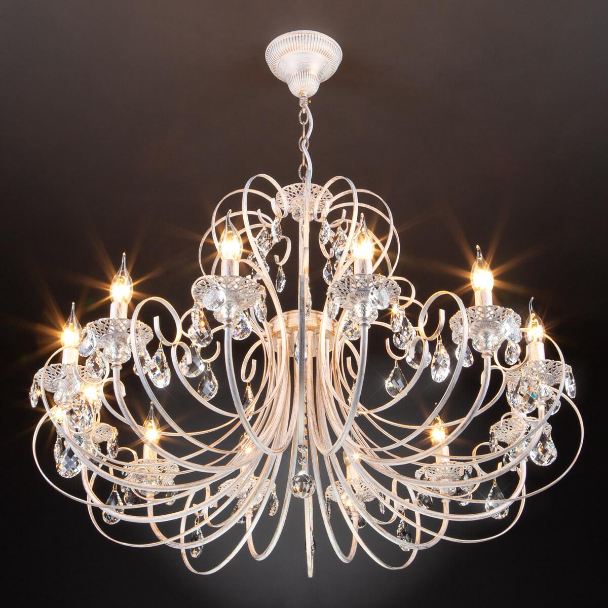 Производитель светильника рекомендует для устройства 12 ламп накаливания с цоколем E14 и мощностью 60 W, что позволит осветить помещение площадью кв.м. Габариты изделия: высота – 700 мм, диаметр – 900 мм.