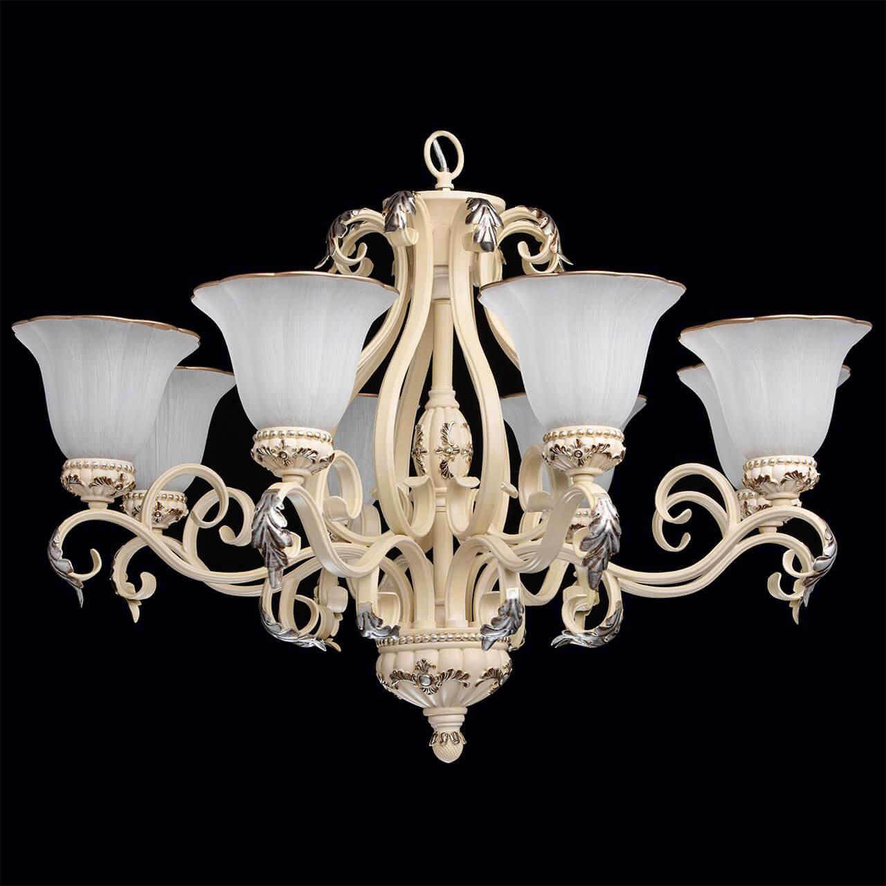 Производитель светильника рекомендует для устройства 8 ламп накаливания с цоколем E27 и мощностью 60 W, что позволит осветить помещение площадью 26,7 кв.м. Габариты изделия: высота – 2310 мм, диаметр – 810 мм.