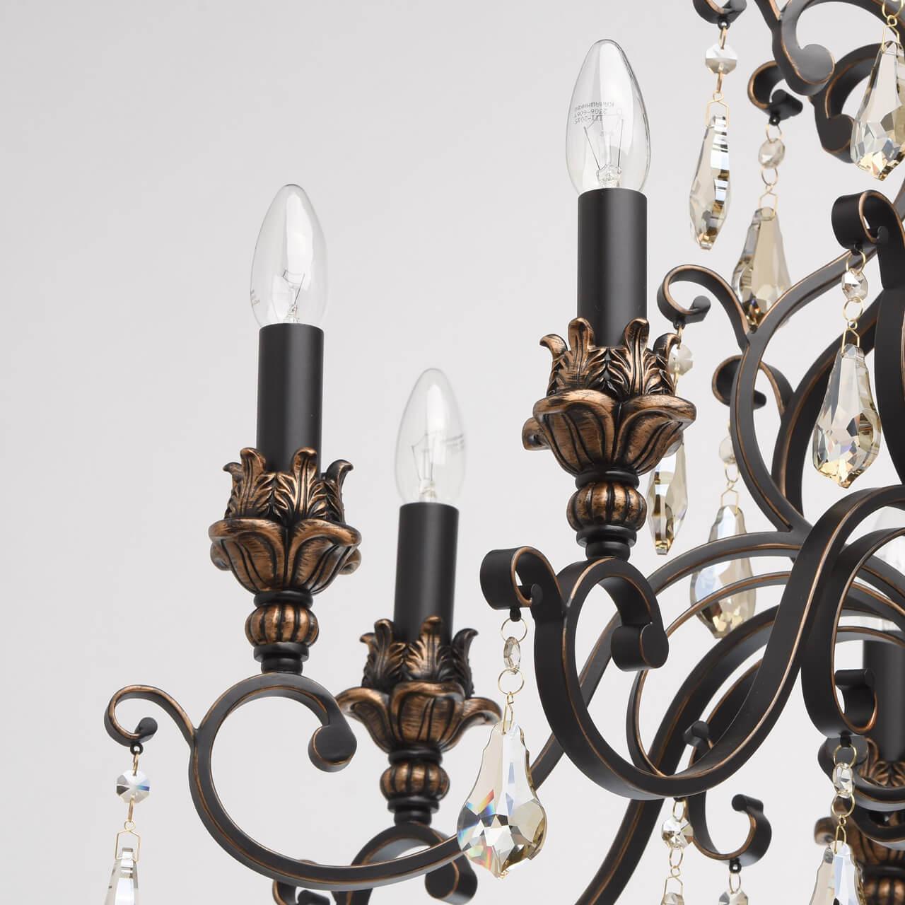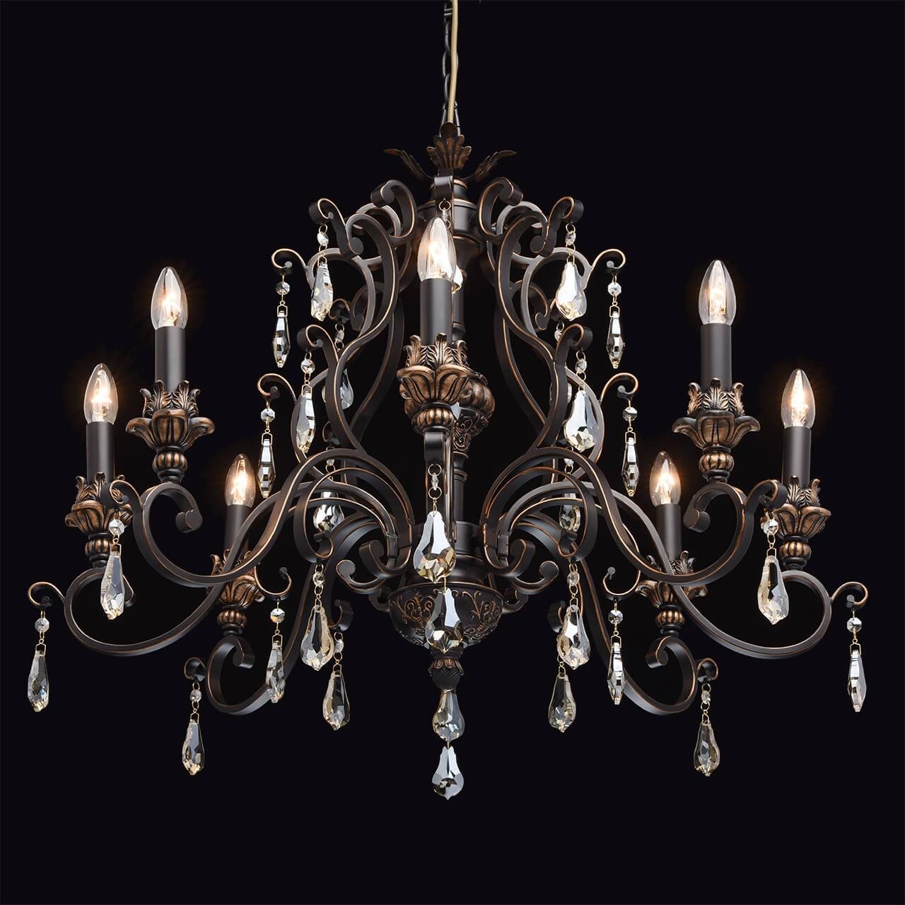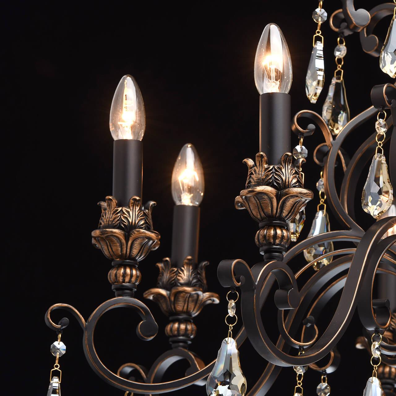 Производитель светильника рекомендует для устройства 8 ламп накаливания с цоколем E14 и мощностью 60 W, что позволит осветить помещение площадью 26,7 кв.м. Габариты изделия: высота – 2250 мм, диаметр – 840 мм.