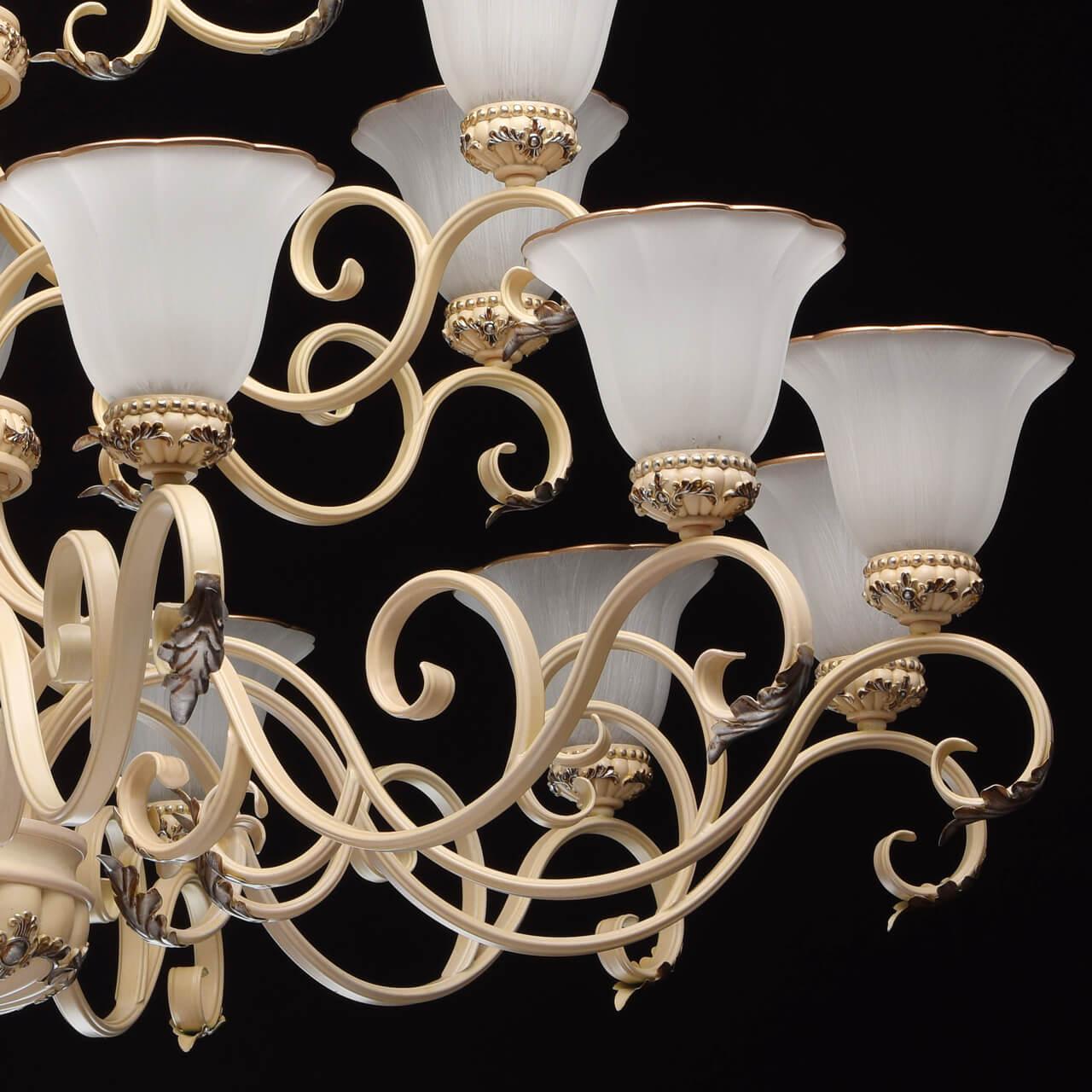 Подвесная люстра Chiaro Версаче 254019421 от Немецкого бренда Chiaro из коллекции Версаче будет удачно смотреться в больших залах в классиком стиле. Светильник выполнен из стекла с плафонами в форме конуса белого цвета.
