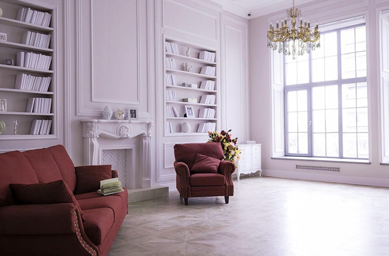 Производитель светильника рекомендует для устройства 15 ламп накаливания с цоколем E14 и мощностью 60 W, что позволит осветить помещение площадью 50,0 кв.м. Габариты изделия: высота – 855 мм, диаметр – 865 мм.