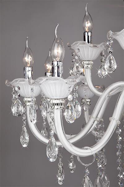 Производитель светильника рекомендует для устройства 15 ламп накаливания с цоколем E14 и мощностью 60 W, что позволит осветить помещение площадью кв.м. Габариты изделия: высота – 1340 мм, диаметр – 1030 мм.