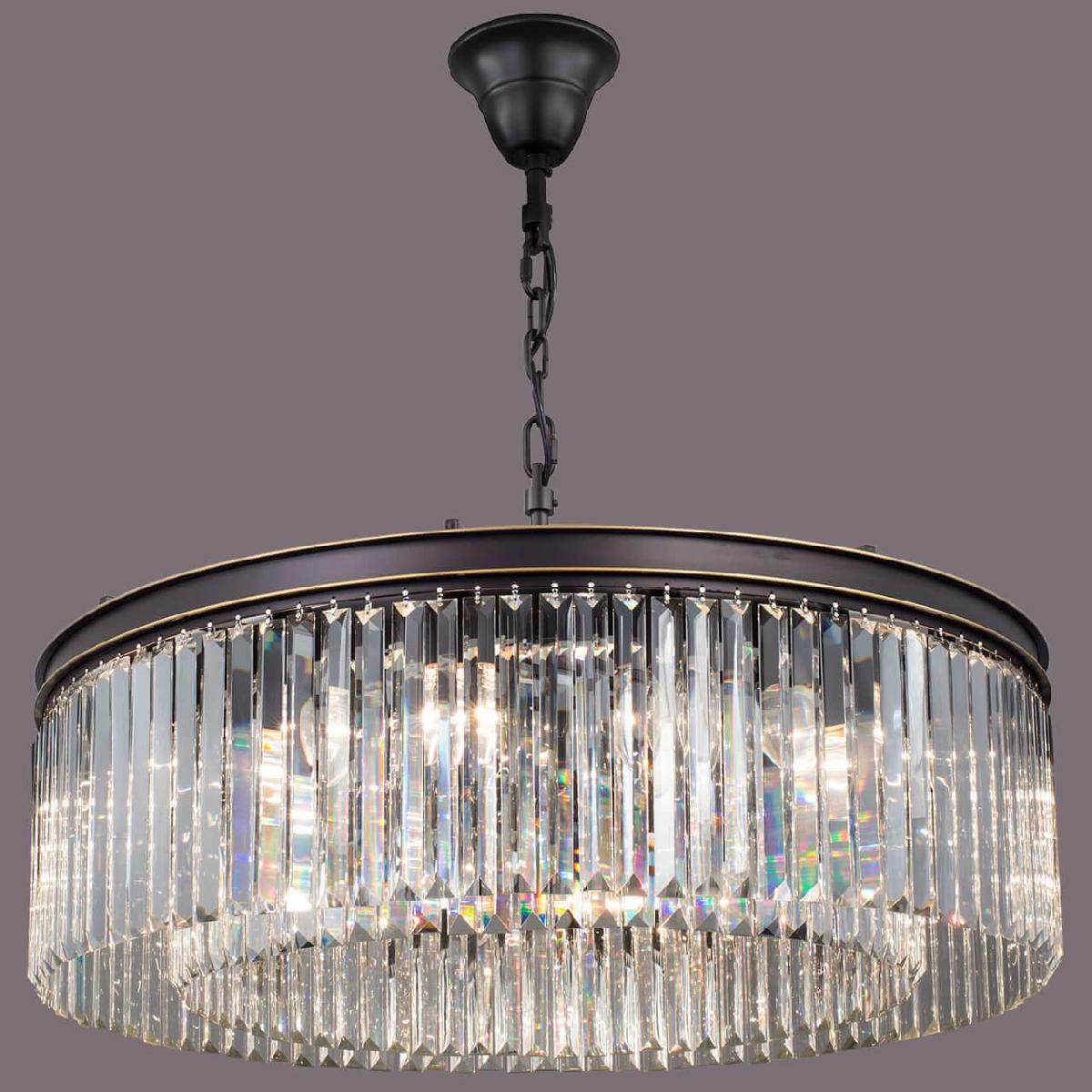 Производитель светильника рекомендует для устройства 16 ламп накаливания с цоколем E14 и мощностью 60 W, что позволит осветить помещение площадью 53,3 кв.м. Габариты изделия: высота – 650 мм, диаметр – 800 мм.