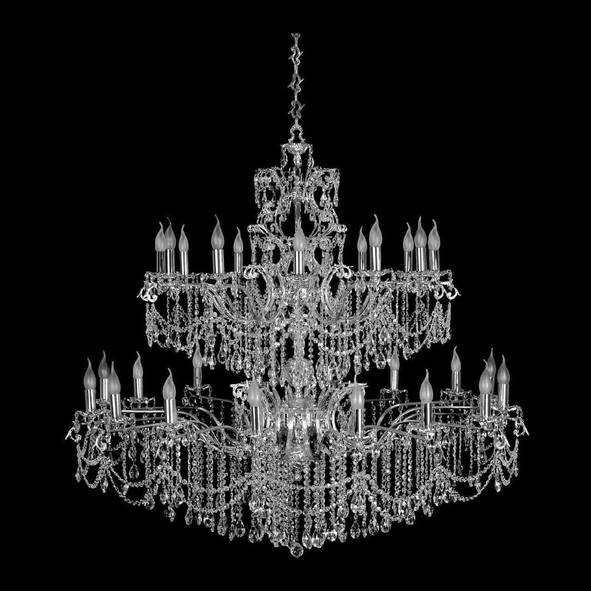 Производитель светильника рекомендует для устройства 28 ламп накаливания с цоколем E14 и мощностью 40 W, что позволит осветить помещение площадью 62,2 кв.м. Габариты изделия: высота – 1300 мм, диаметр – 1300 мм.