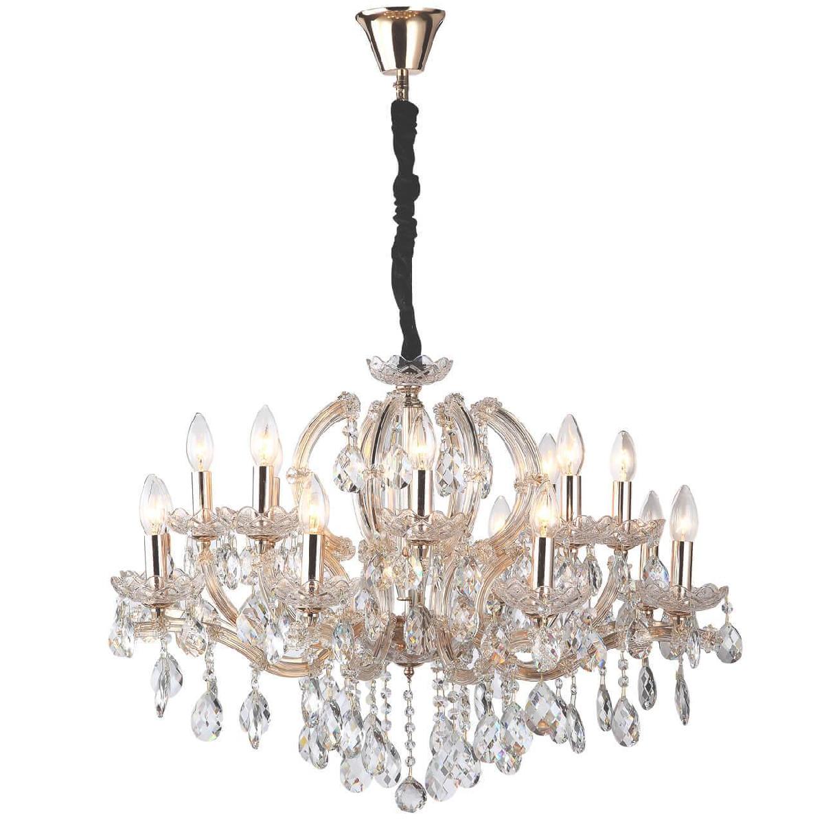 Производитель светильника рекомендует для устройства 16 ламп накаливания с цоколем E14 и мощностью 40 W, что позволит осветить помещение площадью 35,6 кв.м. Габариты изделия: высота – 550 мм, диаметр – 800 мм.