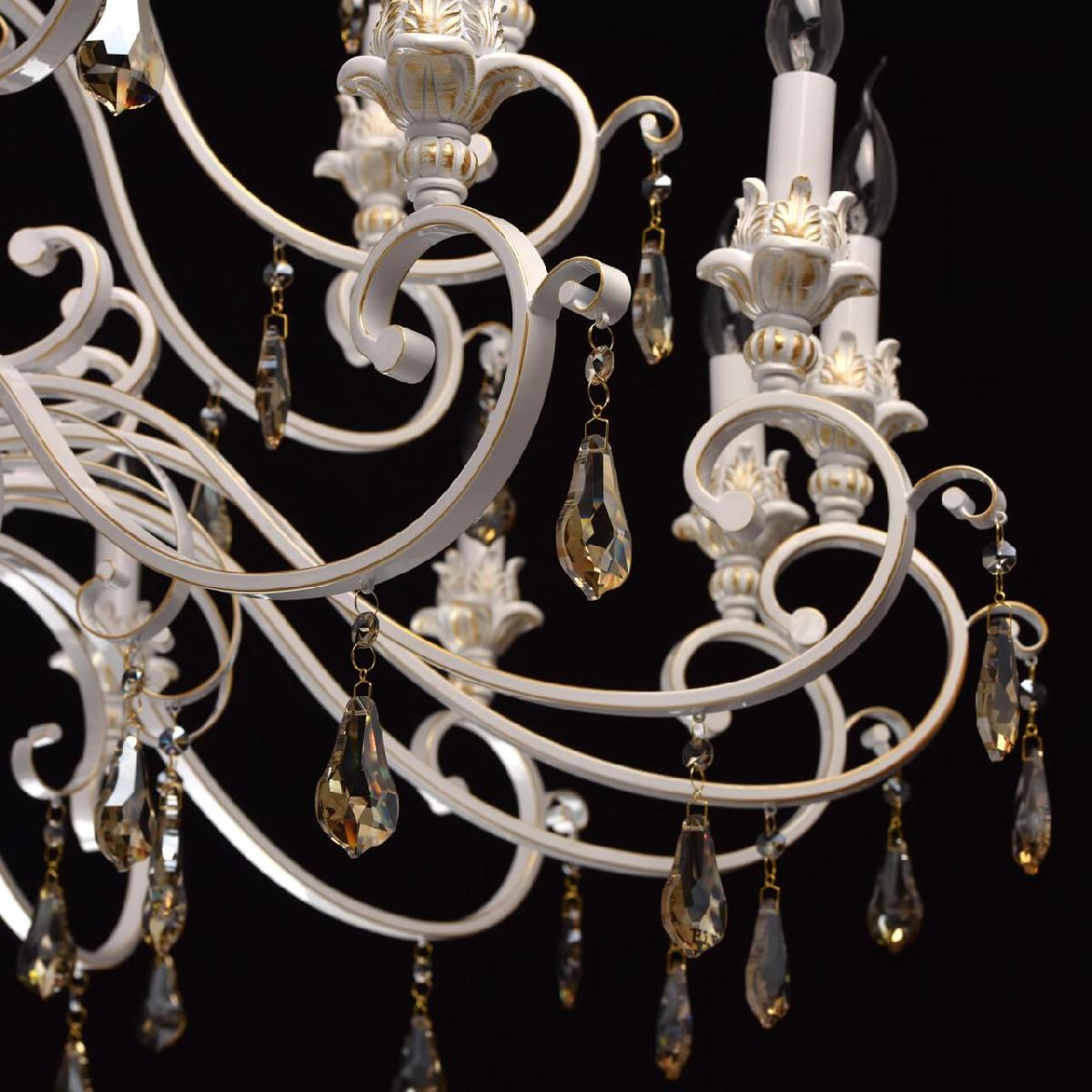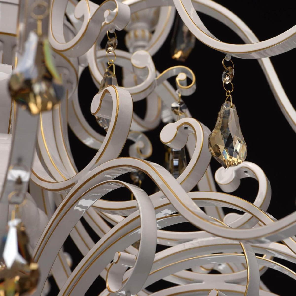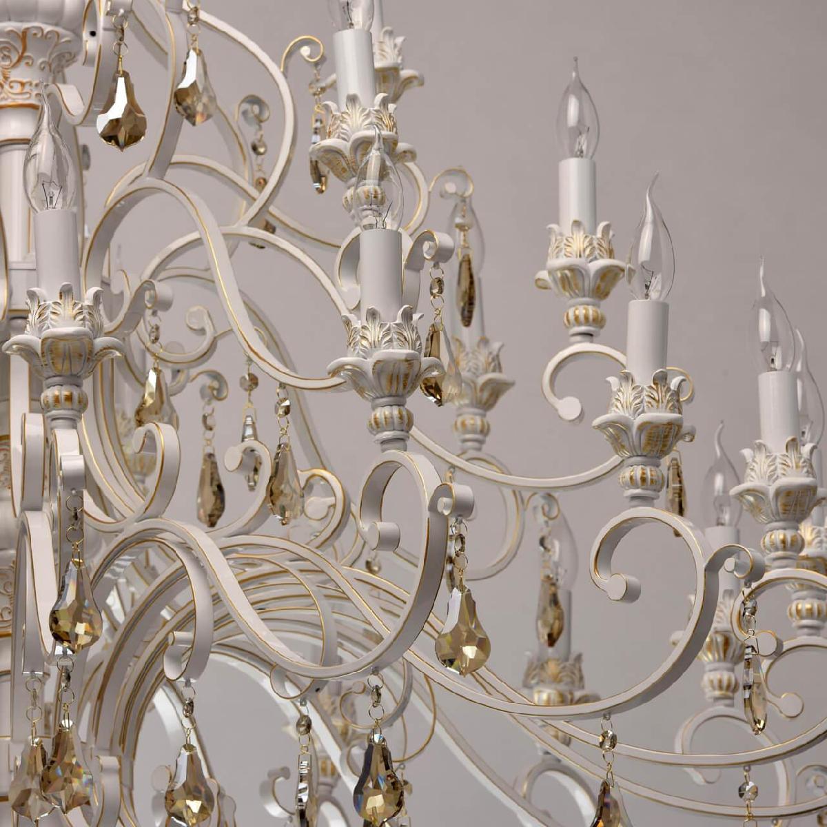 Производитель светильника рекомендует для устройства 28 ламп накаливания с цоколем E14 и мощностью 60 W, что позволит осветить помещение площадью 94 кв.м. Габариты изделия: высота – 1150 мм, диаметр – 1350 мм.