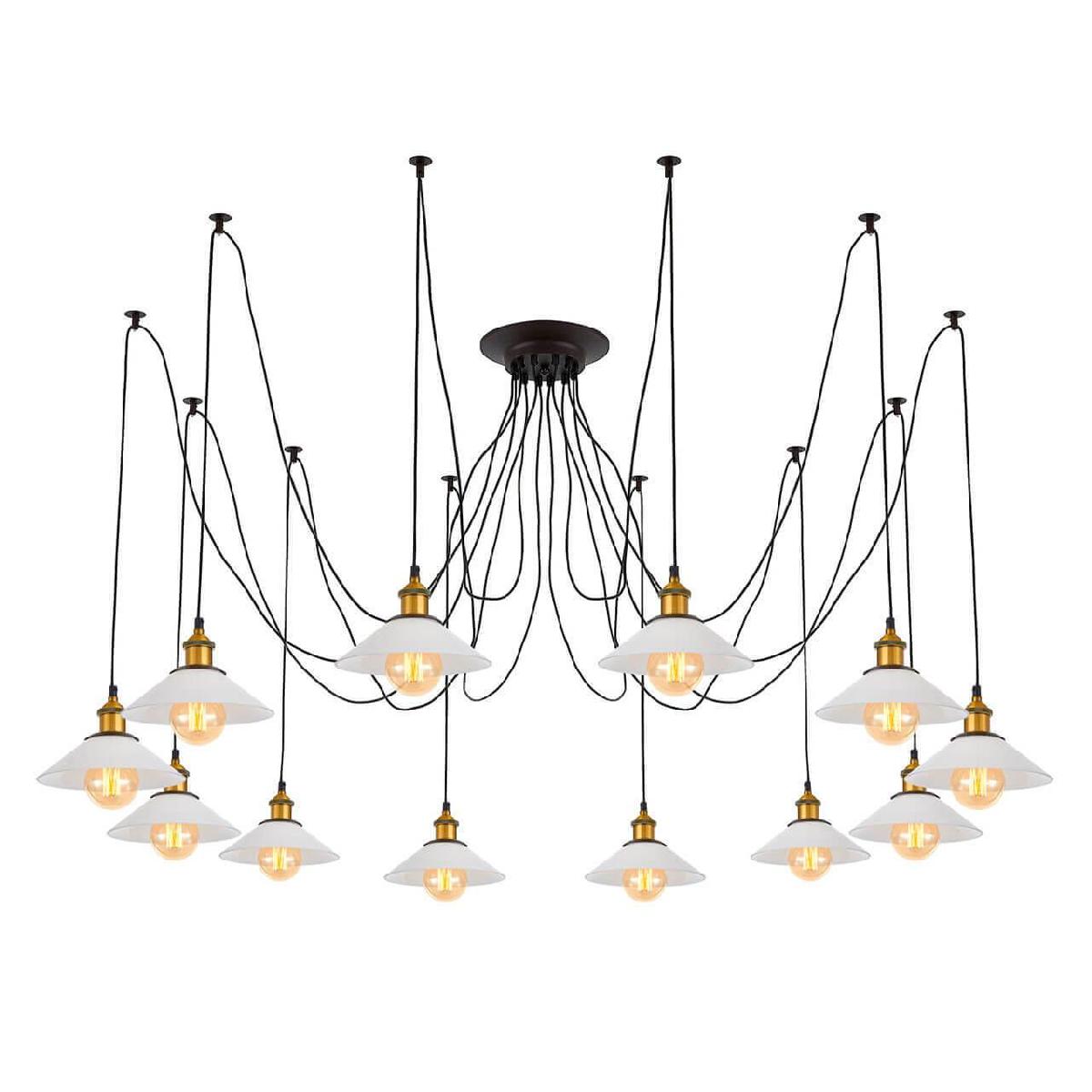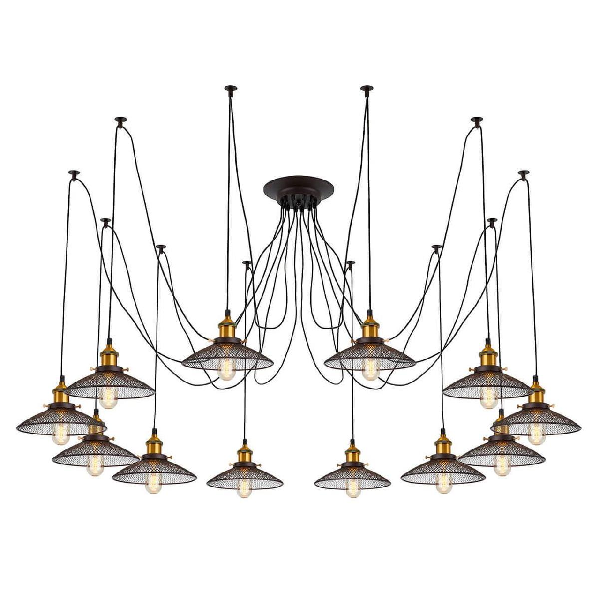 Производитель светильника рекомендует для устройства 12 ламп накаливания с цоколем E27 и мощностью 75 W, что позволит осветить помещение площадью 50 кв.м. Габариты изделия: высота – 2500 мм, диаметр – мм.