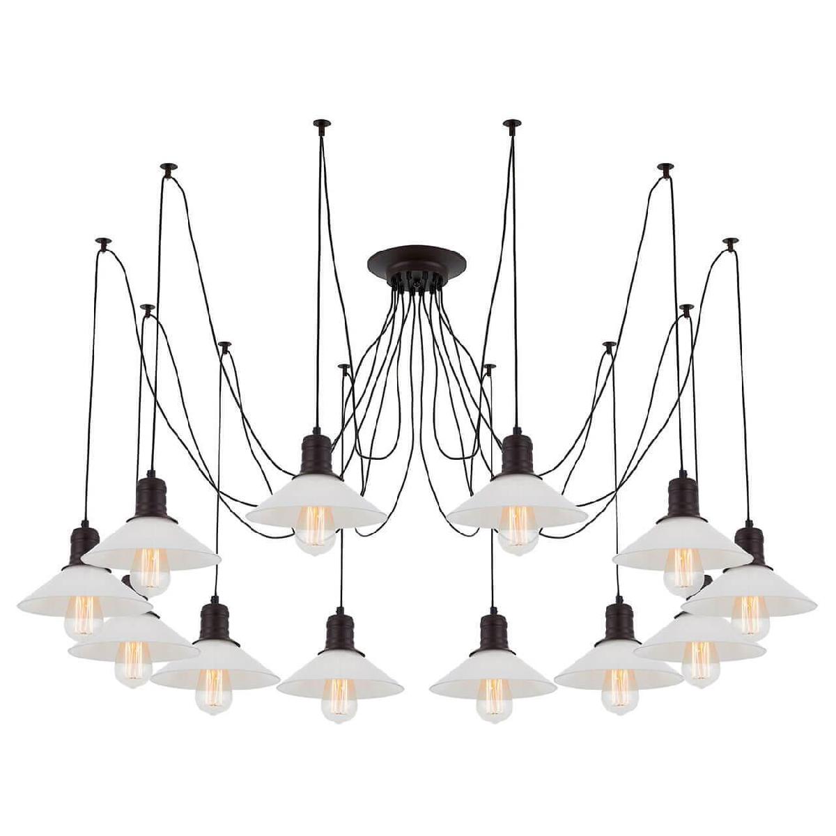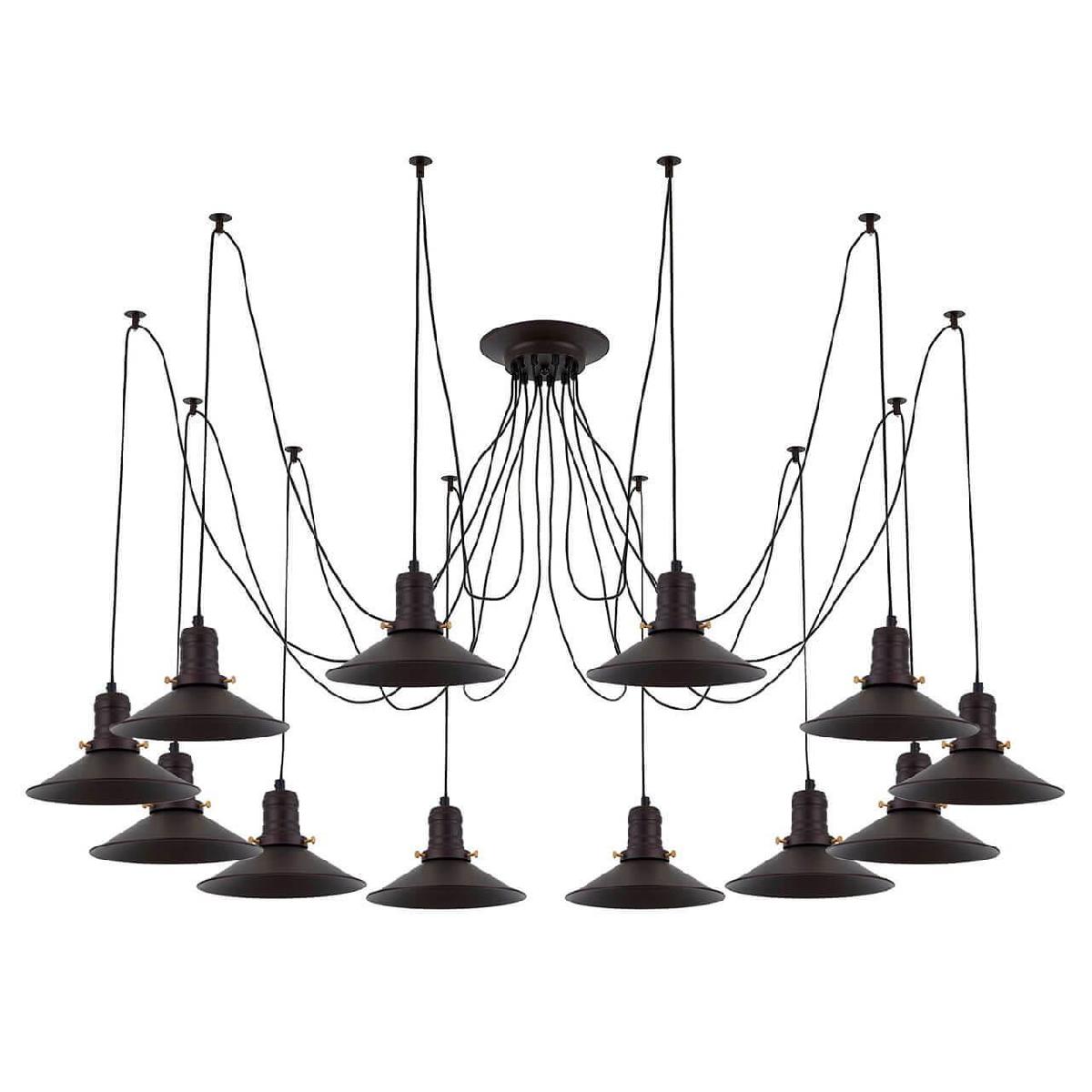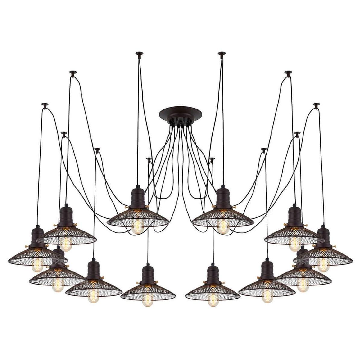Производитель светильника рекомендует для устройства 12 ламп накаливания с цоколем E27 и мощностью 75 W, что позволит осветить помещение площадью 50 кв.м. Габариты изделия: высота – 2500 мм, диаметр – мм.