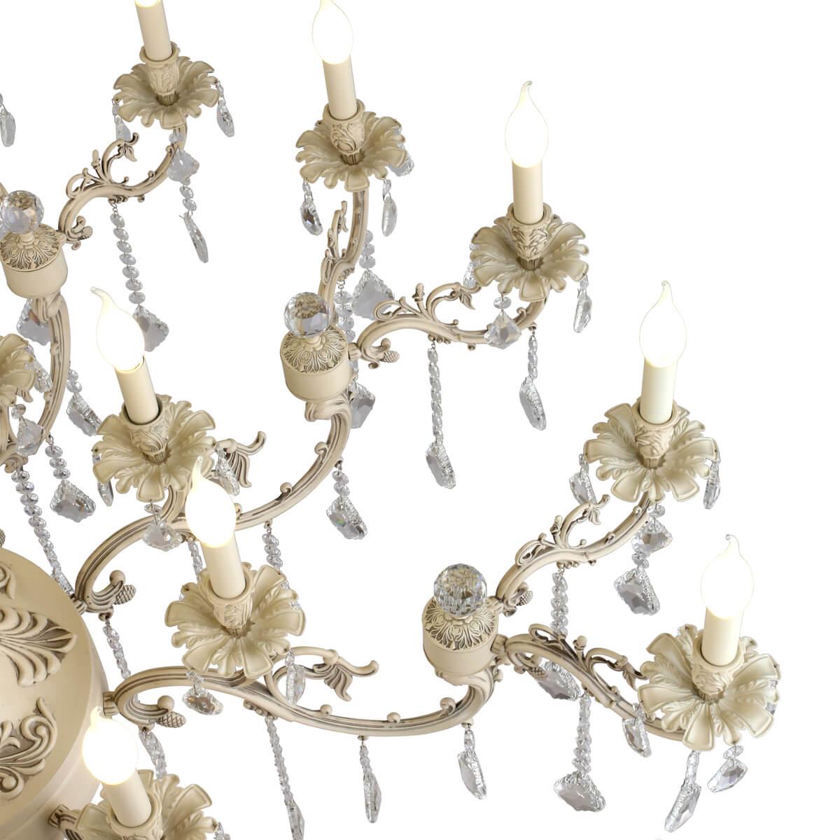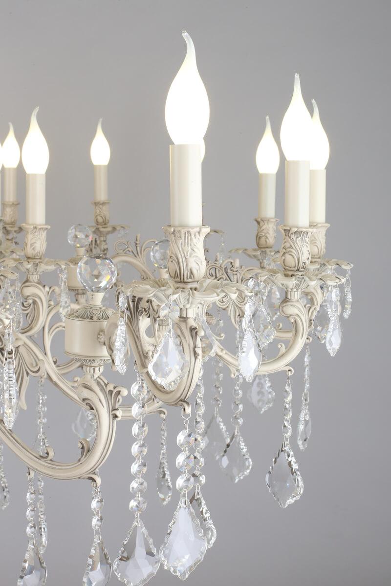 Производитель светильника рекомендует для устройства 27 ламп накаливания с цоколем E14 и мощностью 40 W, что позволит осветить помещение площадью 60 кв.м. Габариты изделия: высота – 1900 мм, диаметр – 1380 мм.