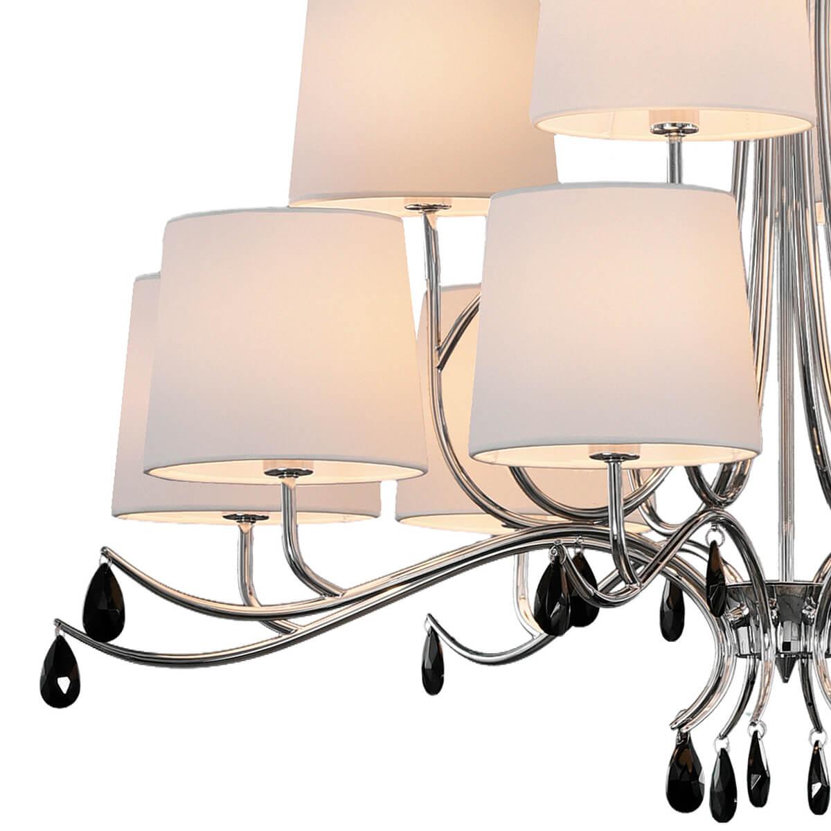 Подвесная люстра Mantra Andrea 6310 от Китайского бренда Mantra из коллекции Andrea будет удачно смотреться в больших залах в дизайнерском стиле. Светильник выполнен из ткани с плафонами в форме конуса белого цвета.