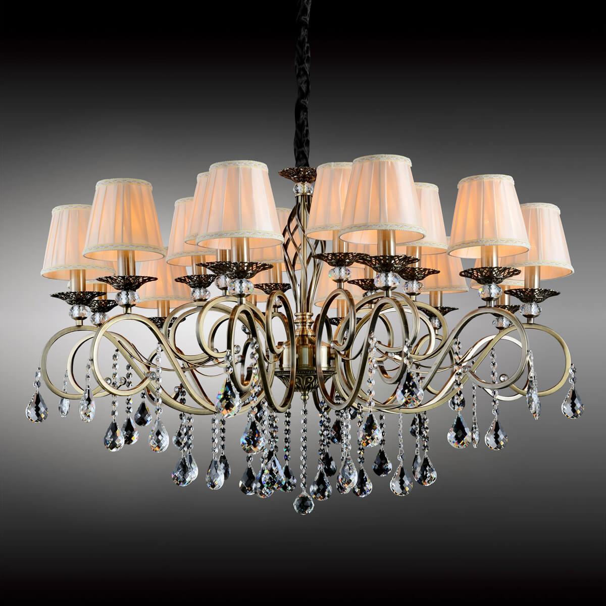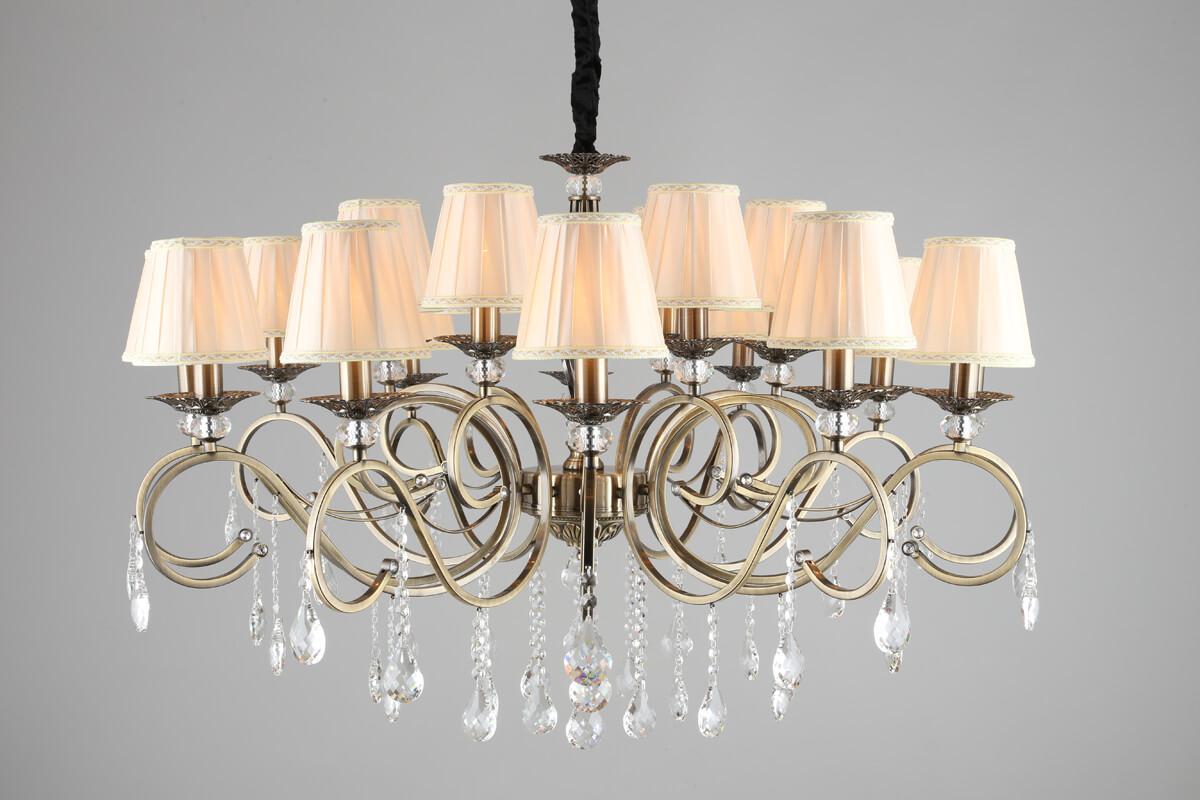 Производитель светильника рекомендует для устройства 18 ламп накаливания с цоколем E14 и мощностью 40 W, что позволит осветить помещение площадью кв.м. Габариты изделия: высота – 1260 мм, диаметр – 1000 мм.