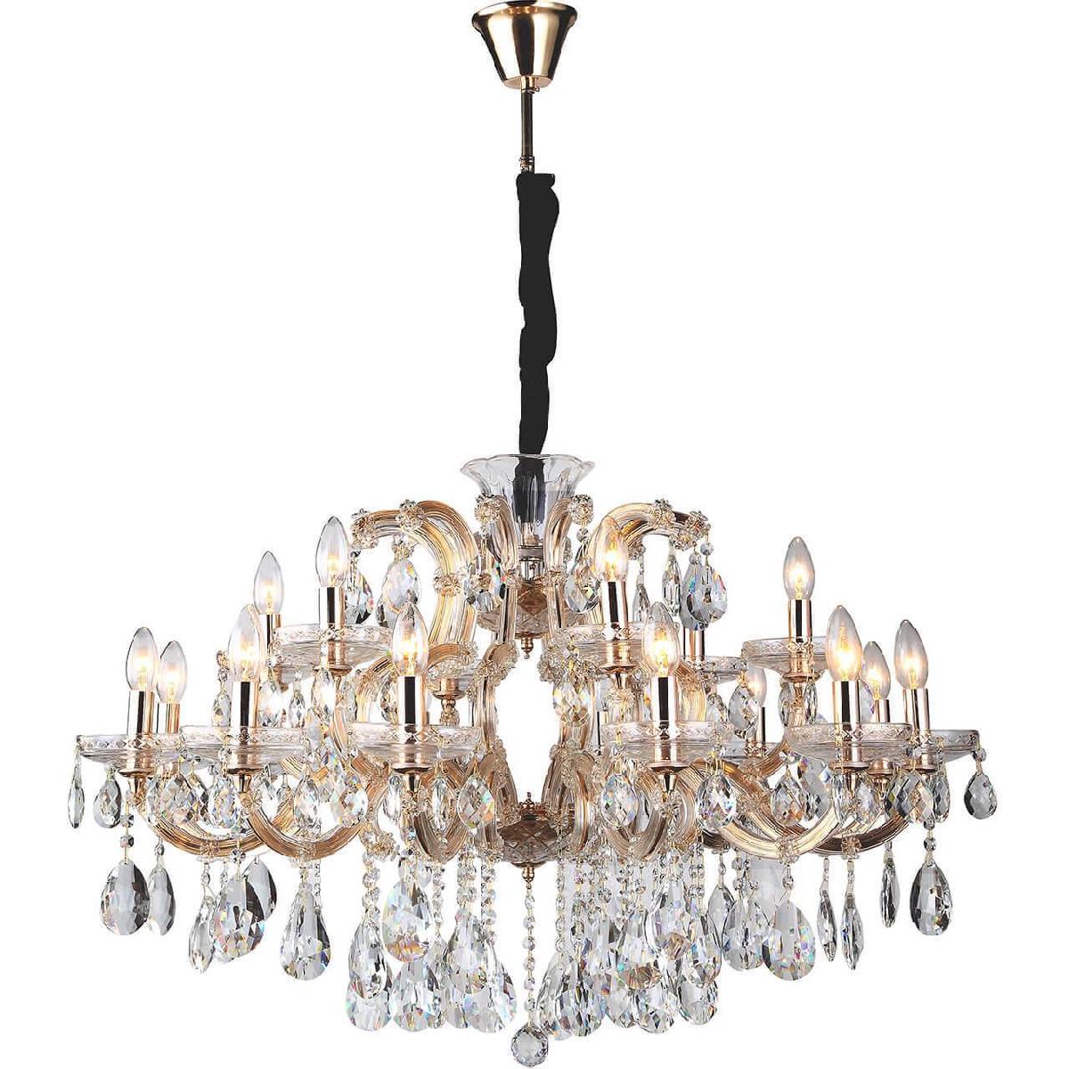 Производитель светильника рекомендует для устройства 18 ламп накаливания с цоколем E14 и мощностью 60 W, что позволит осветить помещение площадью 21,6 кв.м. Габариты изделия: высота – 620 мм, диаметр – 920 мм.