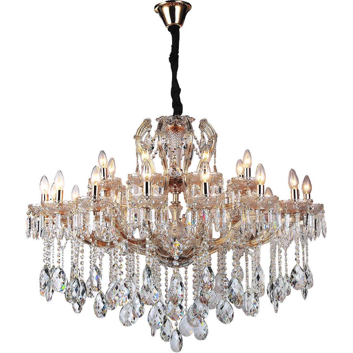 Производитель светильника рекомендует для устройства 24 ламп накаливания с цоколем E14 и мощностью 60 W, что позволит осветить помещение площадью 28,8 кв.м. Габариты изделия: высота – 1000 мм, диаметр – 1100 мм.