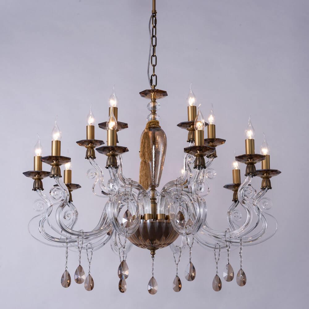 Производитель светильника рекомендует для устройства 15 ламп накаливания с цоколем E14 и мощностью 40 W, что позволит осветить помещение площадью кв.м. Габариты изделия: высота – 750 мм, диаметр – 930 мм.