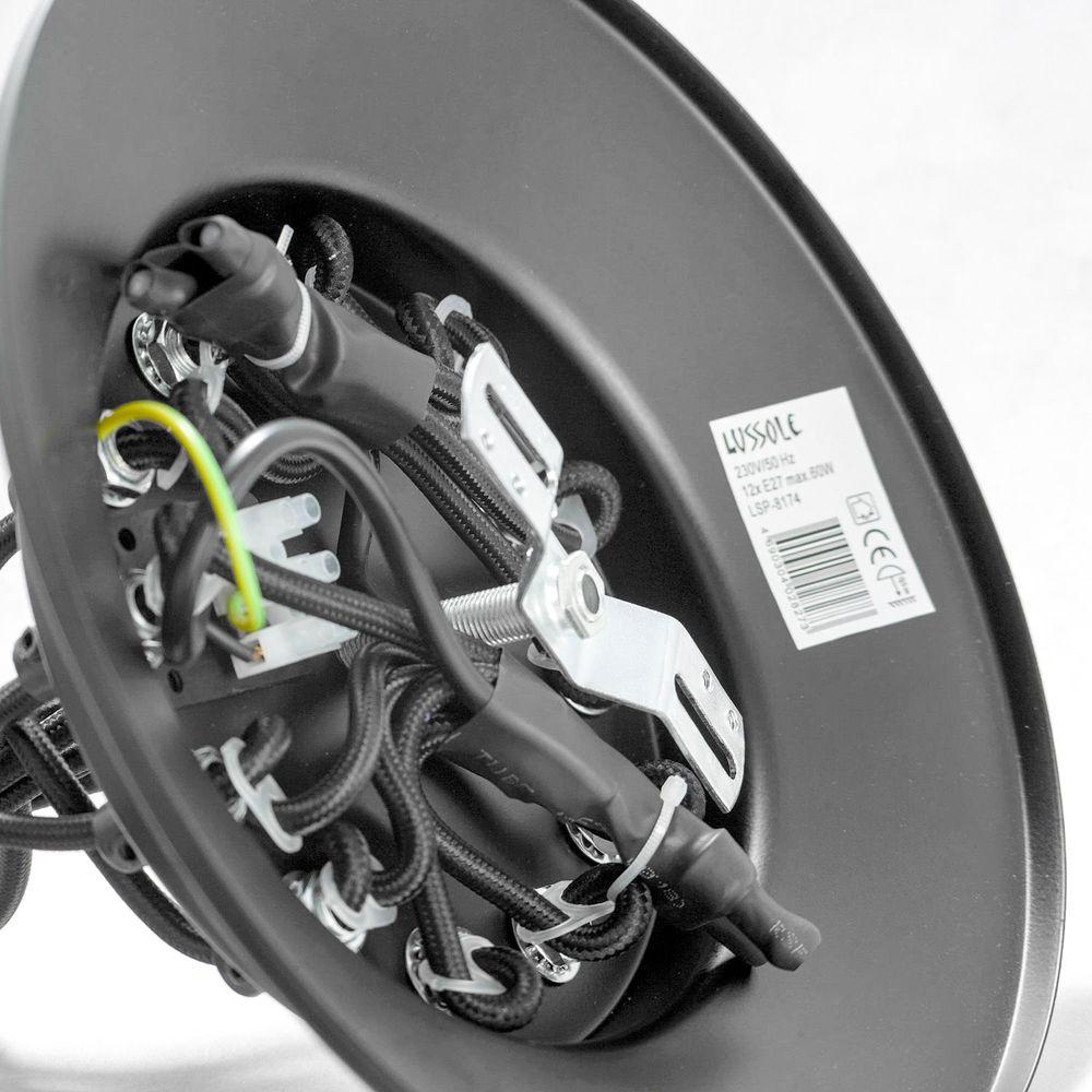 Производитель светильника рекомендует для устройства 12 светодиодных ламп с цоколем E27 и мощностью 10 W, что позволит осветить помещение площадью 60 кв.м. Габариты изделия: высота – 500 мм, диаметр – мм.