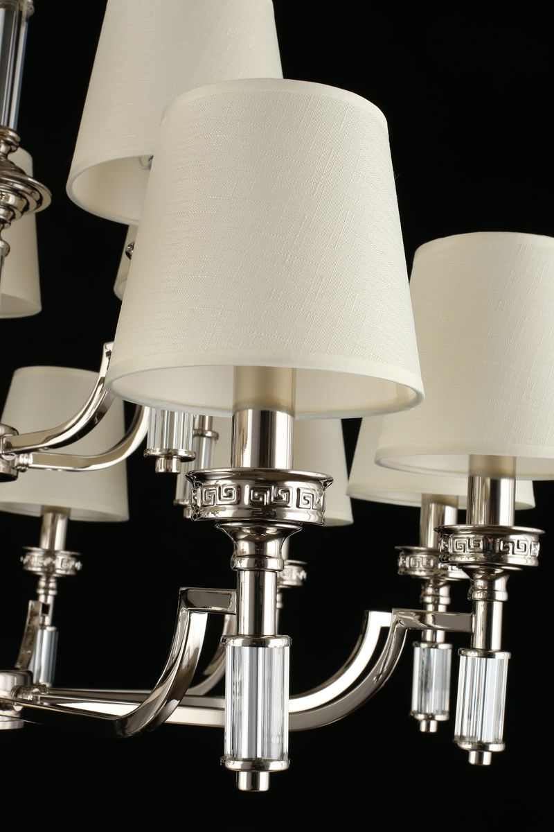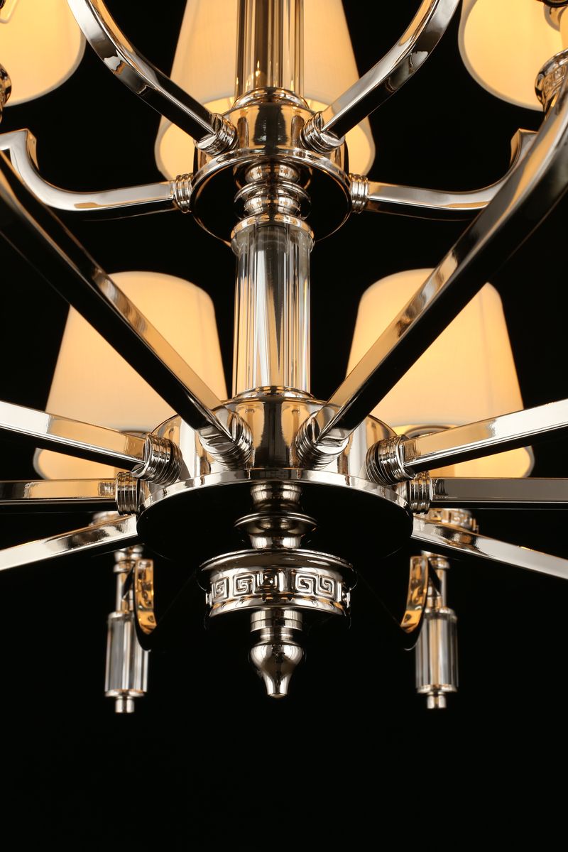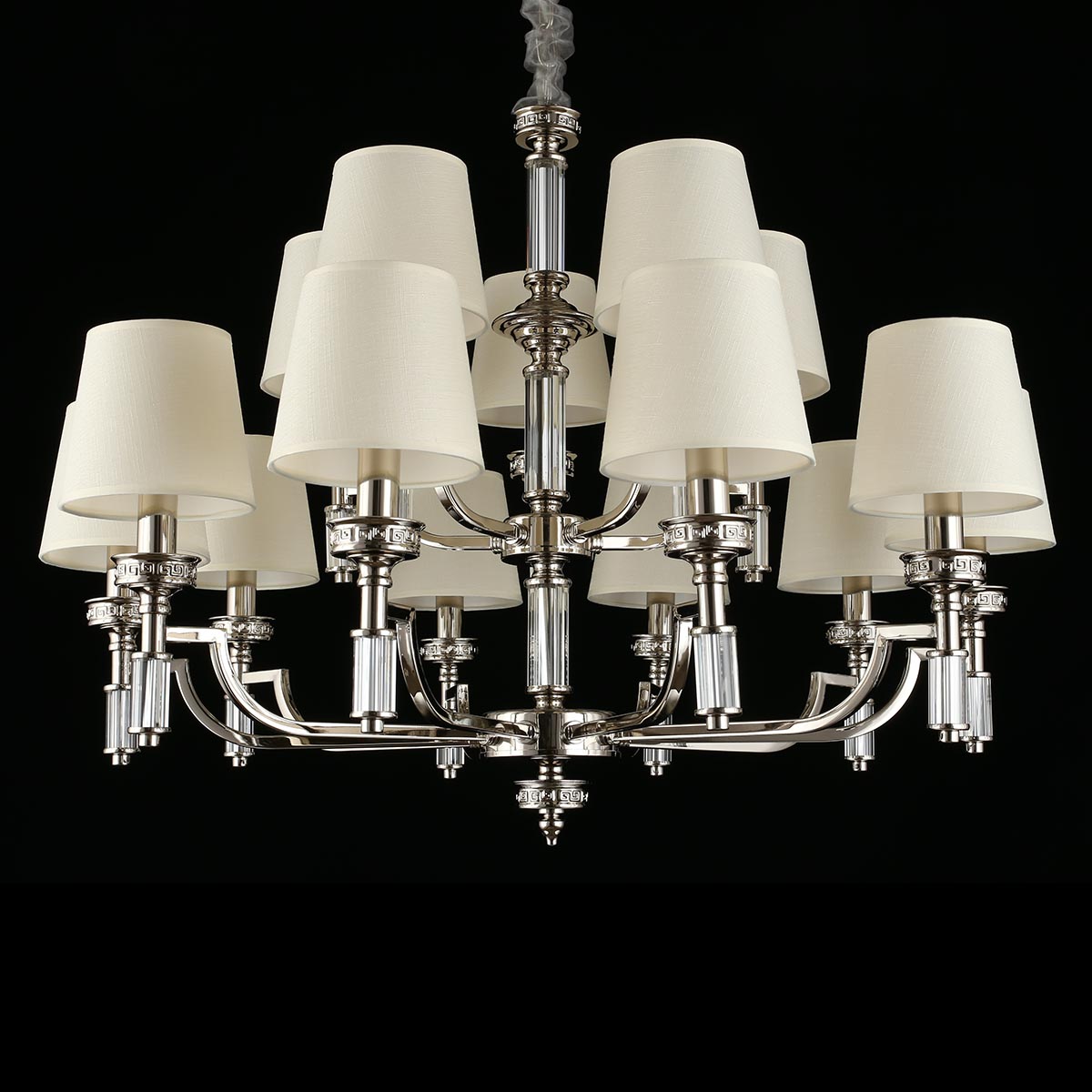 Производитель светильника рекомендует для устройства 15 ламп накаливания с цоколем E14 и мощностью 40 W, что позволит осветить помещение площадью 33 кв.м. Габариты изделия: высота – 900 мм, диаметр – 900 мм.