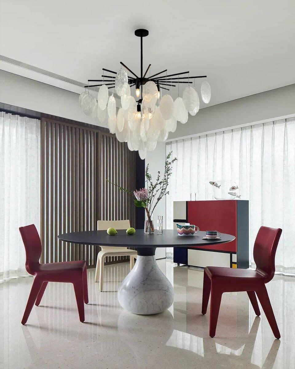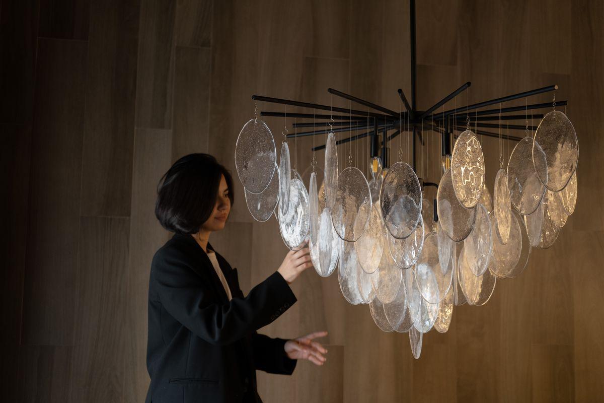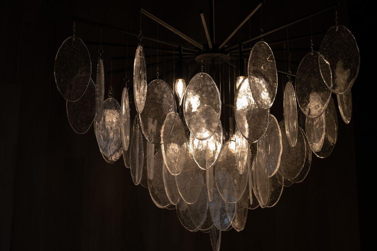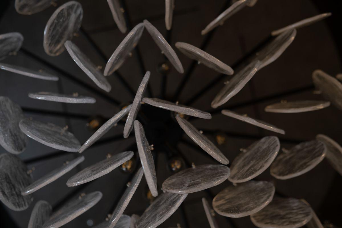 Производитель светильника рекомендует для устройства 8 ламп накаливания с цоколем E14 и мощностью 40 W, что позволит осветить помещение площадью 16 кв.м. Габариты изделия: высота – 720 мм, диаметр – 1065 мм.