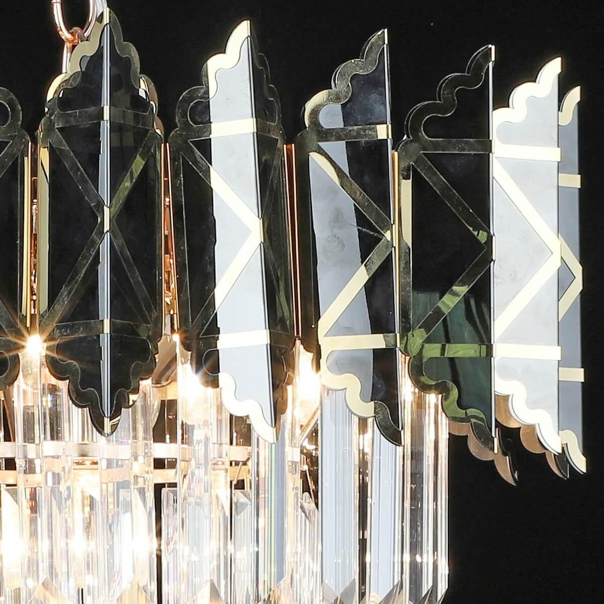Подвесная люстра Reluce 02202-0.4-05 FGD+BK от Китайского бренда из коллекции будет удачно смотреться в больших залах в классиком стиле. Светильник выполнен из хрусталя с плафонами в форме прозрачного цвета.