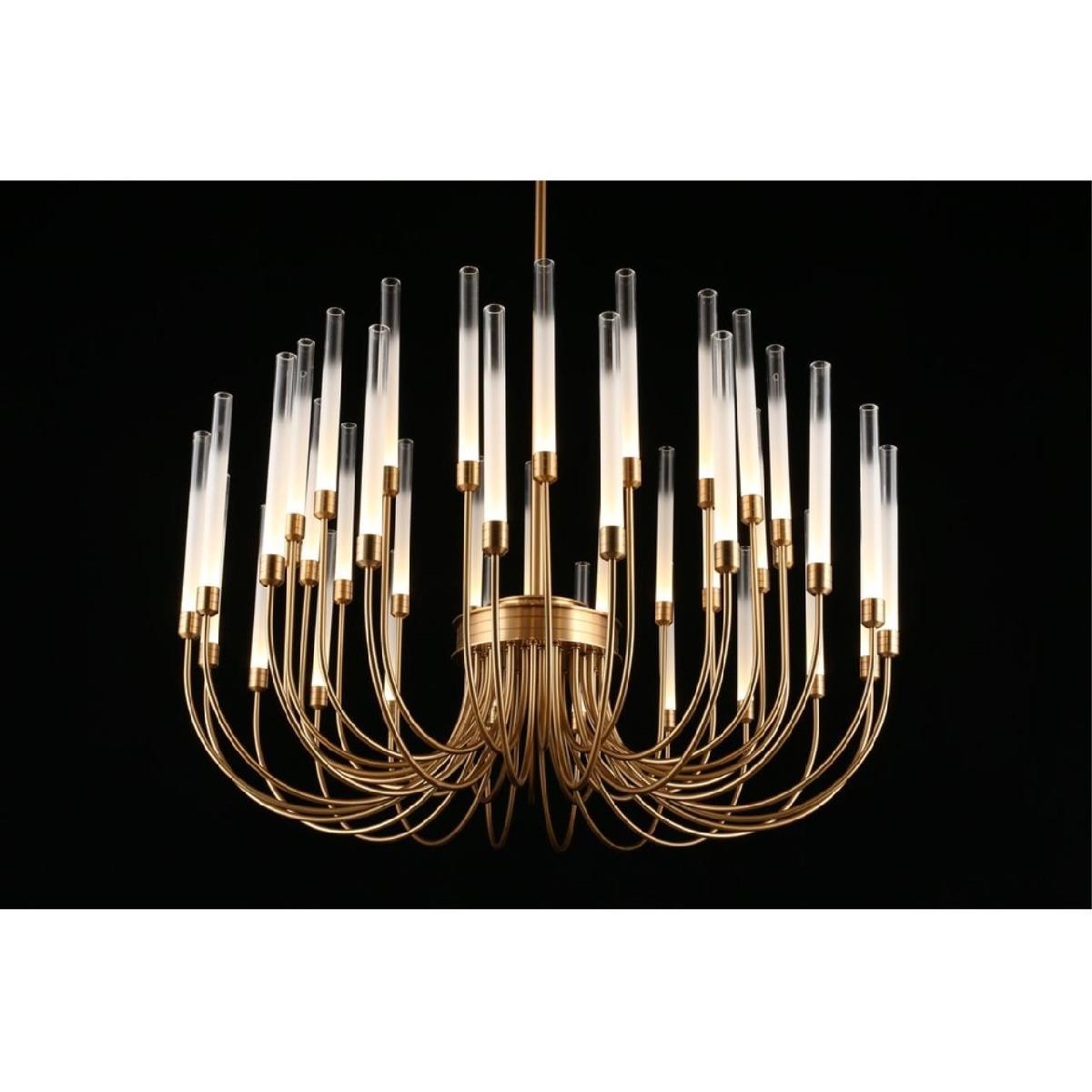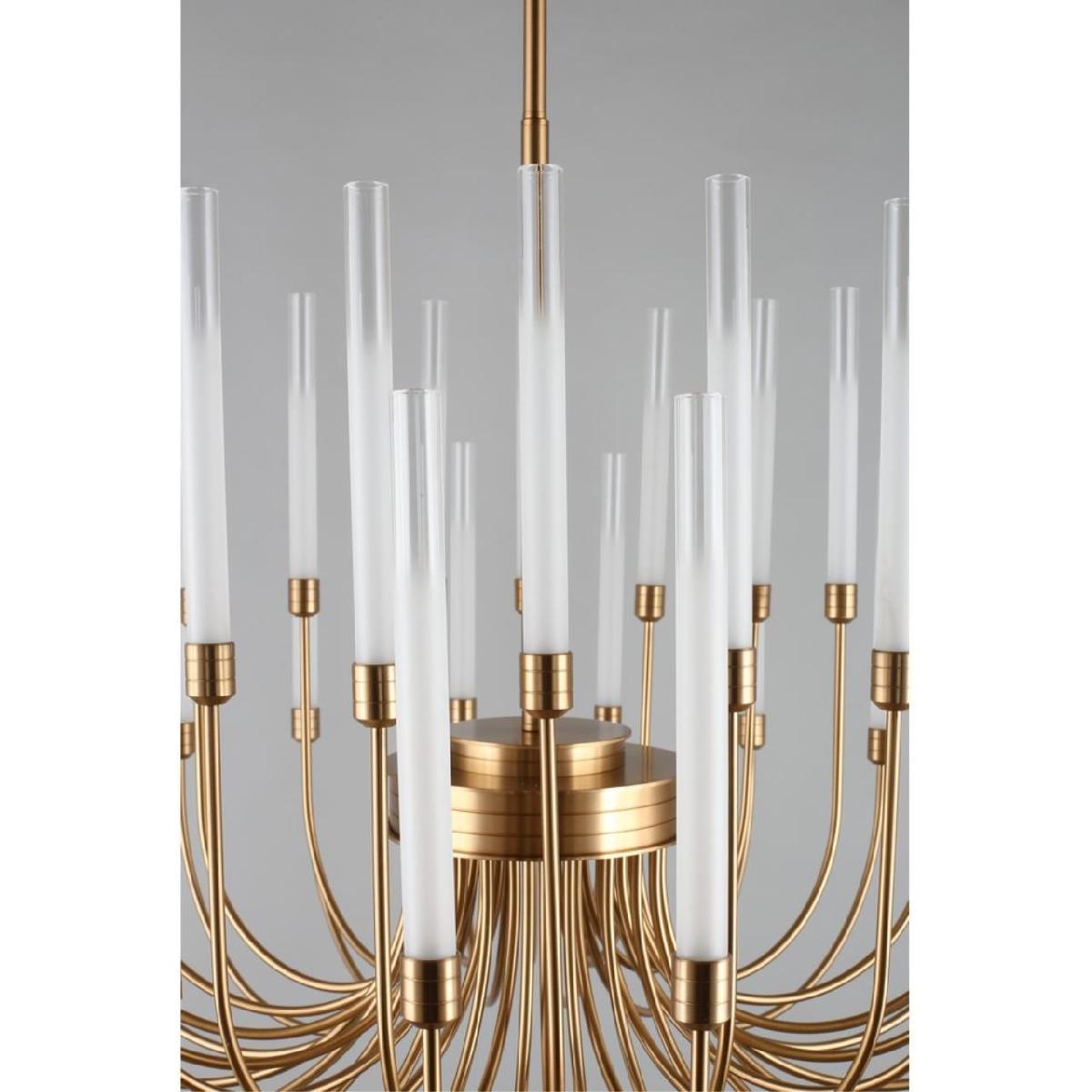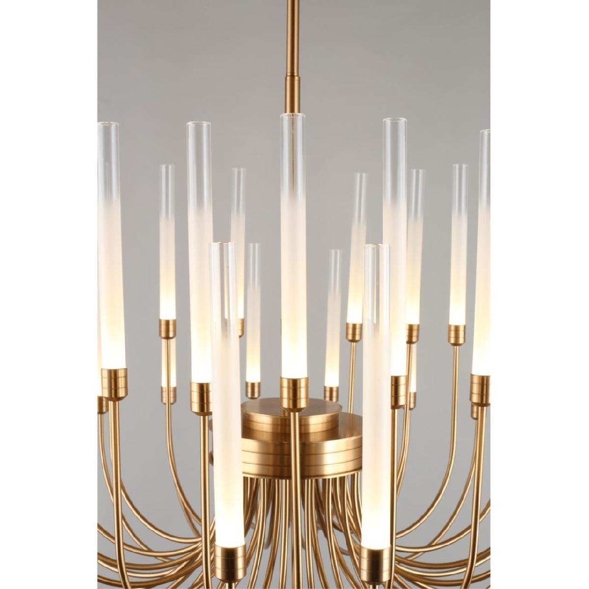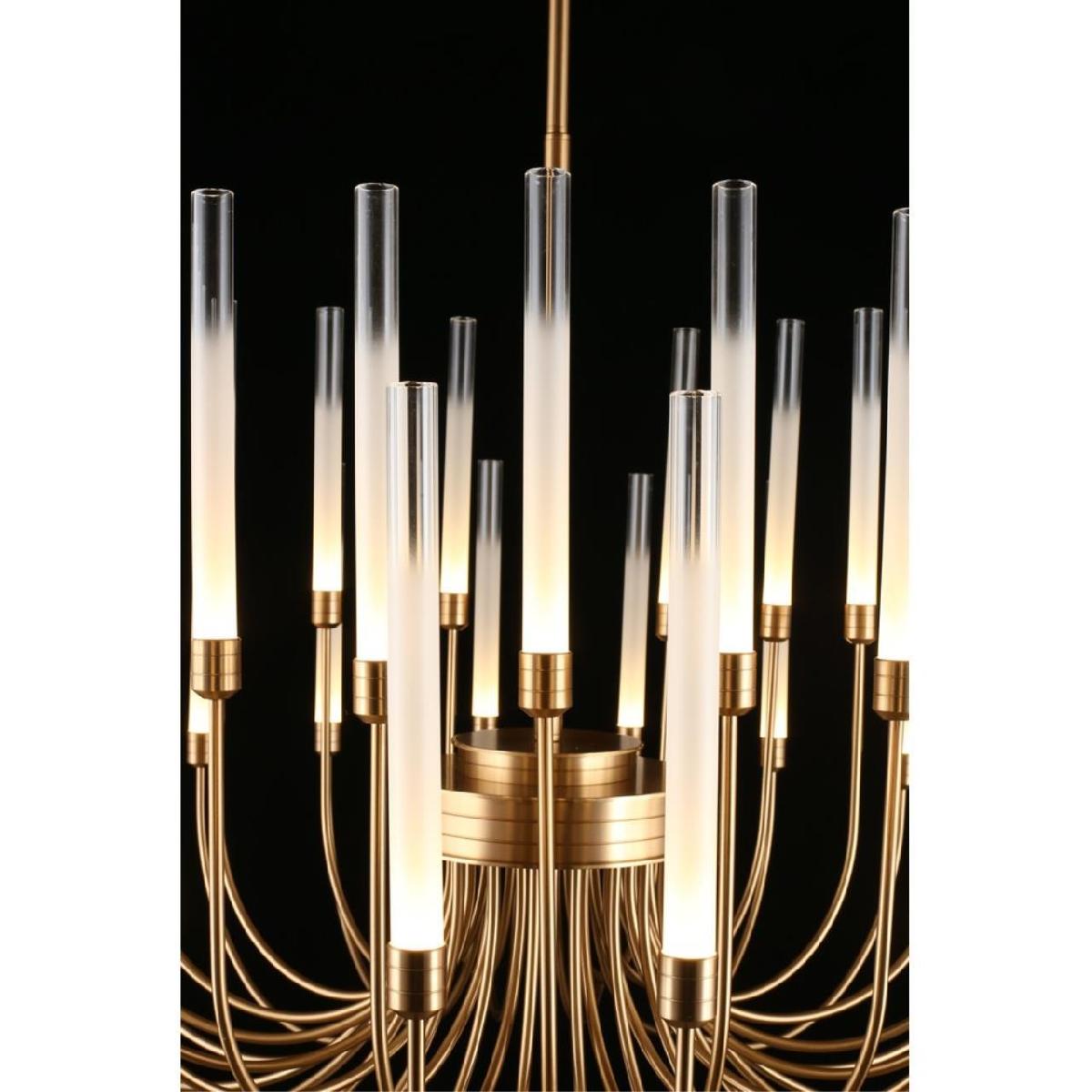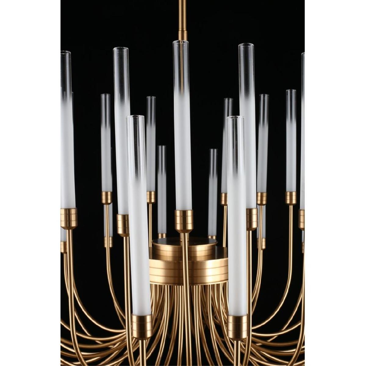 Производитель светильника рекомендует для устройства светодиодных ламп с цоколем LED и мощностью 80 W, что позволит осветить помещение площадью 16 кв.м. Габариты изделия: высота – 800 мм, диаметр – 850 мм.