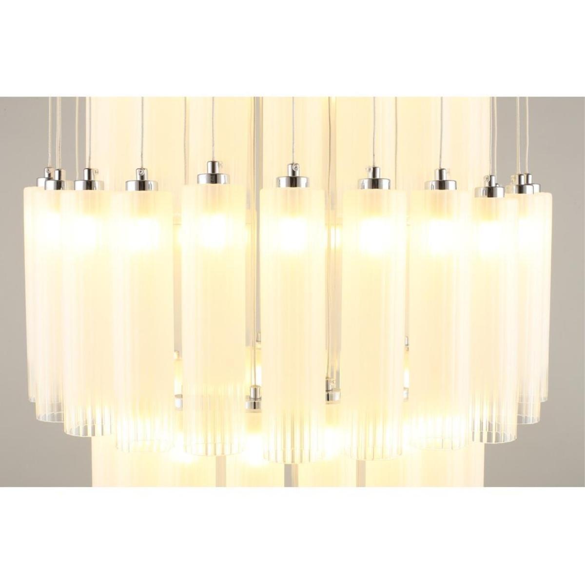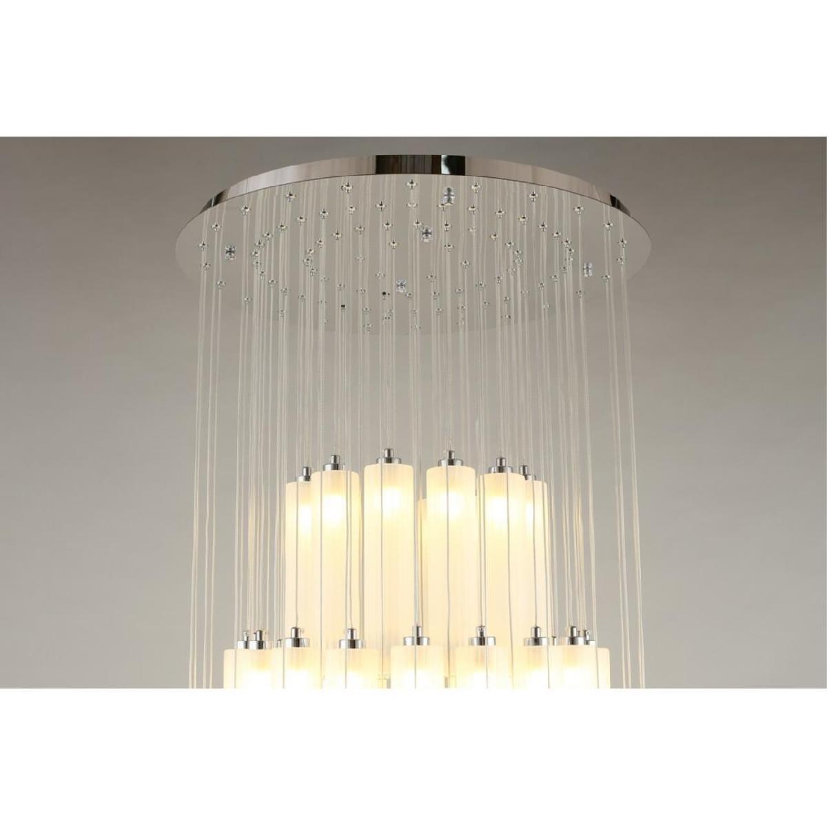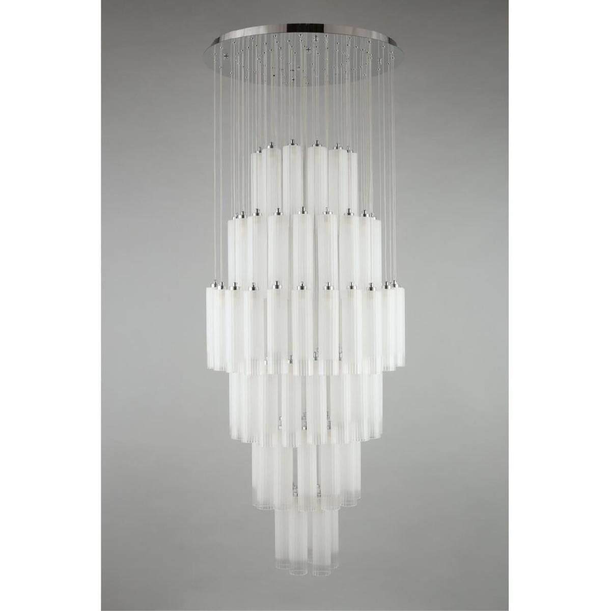Производитель светильника рекомендует для устройства 144 светодиодных ламп с цоколем G9 и мощностью 3 W, что позволит осветить помещение площадью 90 кв.м. Габариты изделия: высота – 2000 мм, диаметр – 800 мм.