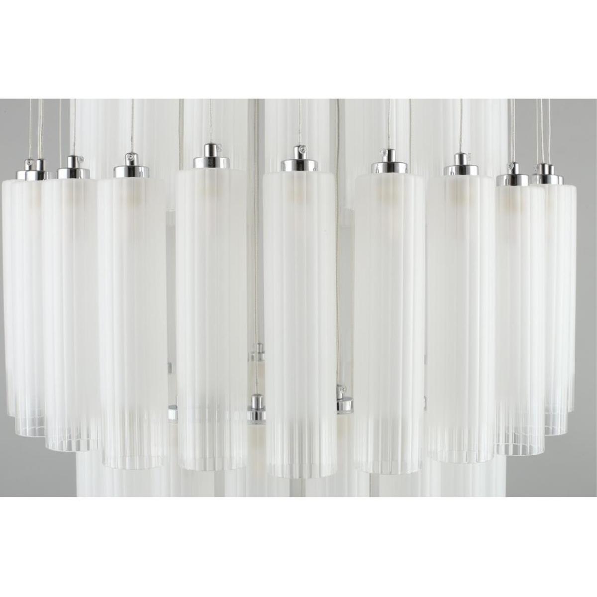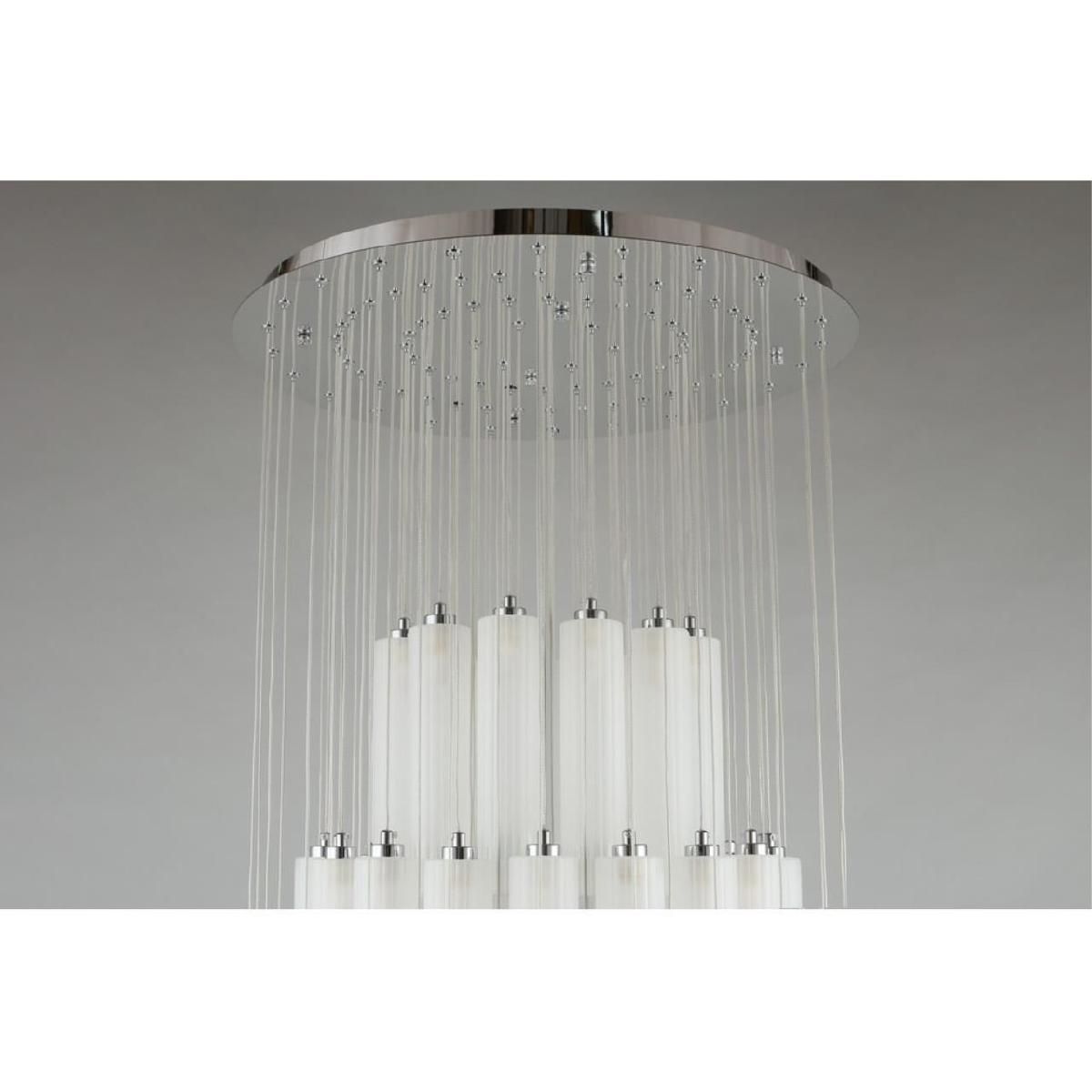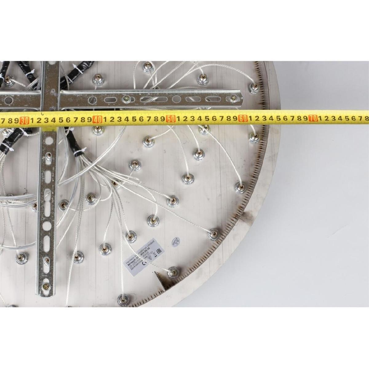 Производитель светильника рекомендует для устройства 90 светодиодных ламп с цоколем G9 и мощностью 3 W, что позволит осветить помещение площадью 50 кв.м. Габариты изделия: высота – 1000 мм, диаметр – 660 мм.