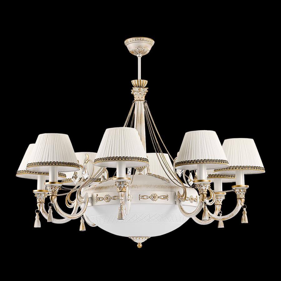 Подвесная люстра Kutek Roma Abazur ROM-ZW-8+1 (BZ/A) от Польского бренда Kutek из коллекции Roma Abazur будет удачно смотреться в гостиной в классиком стиле. Светильник выполнен из ткани с плафонами в форме .