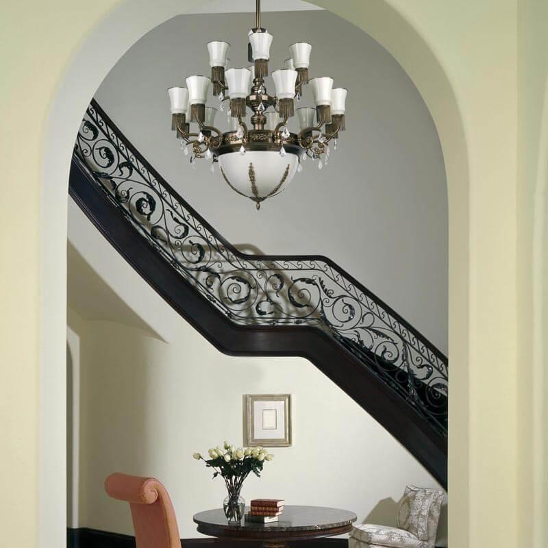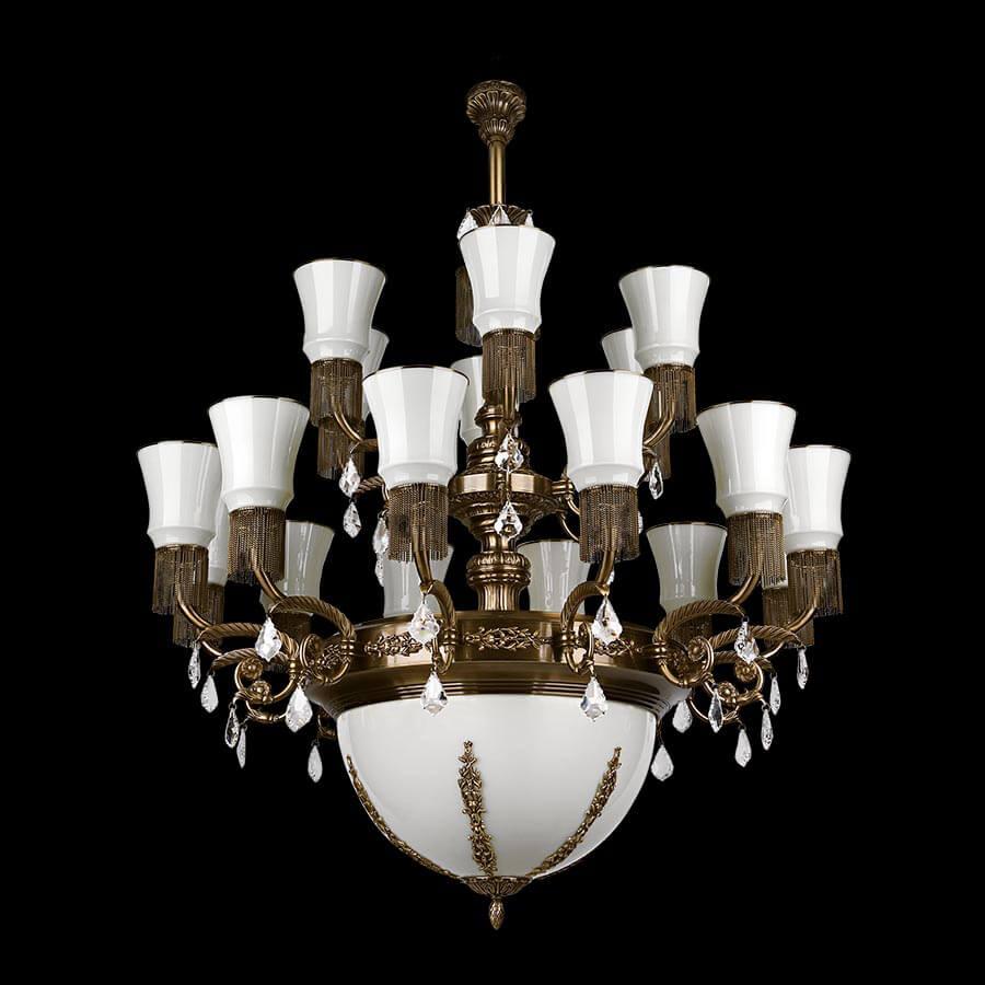 Производитель светильника рекомендует для устройства 24 ламп накаливания с цоколем E27 и мощностью 40 W, что позволит осветить помещение площадью кв.м. Габариты изделия: высота – 1300 мм, диаметр – 1200 мм.