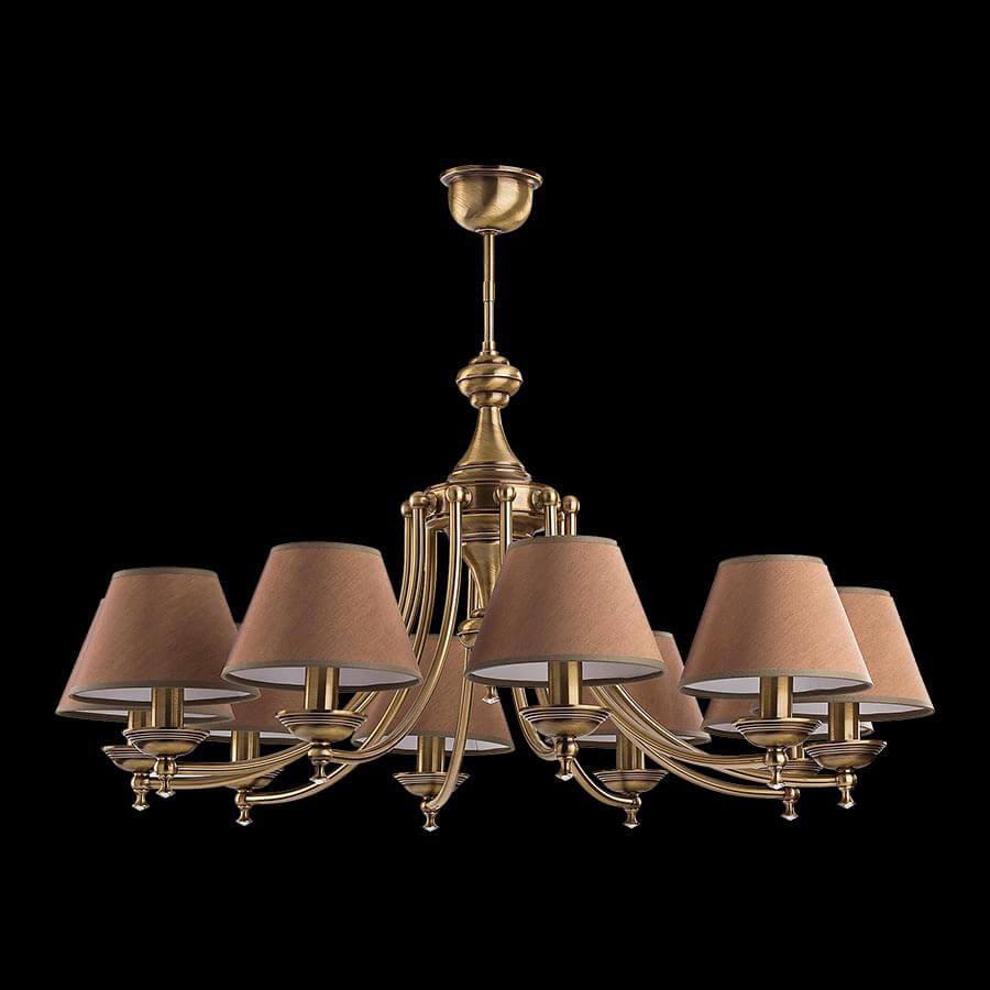 Производитель светильника рекомендует для устройства 10 ламп накаливания с цоколем E14 и мощностью 40 W, что позволит осветить помещение площадью кв.м. Габариты изделия: высота – 800 мм, диаметр – 960 мм.