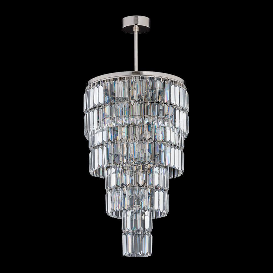 Каскадная люстра Kutek Ellini ELL-ZW-9 (BN) 350 от Польского бренда Kutek из коллекции Ellini будет удачно смотреться в гостиной в американском стиле. Светильник выполнен из хрусталя с плафонами в форме декоративного цвет хрома.