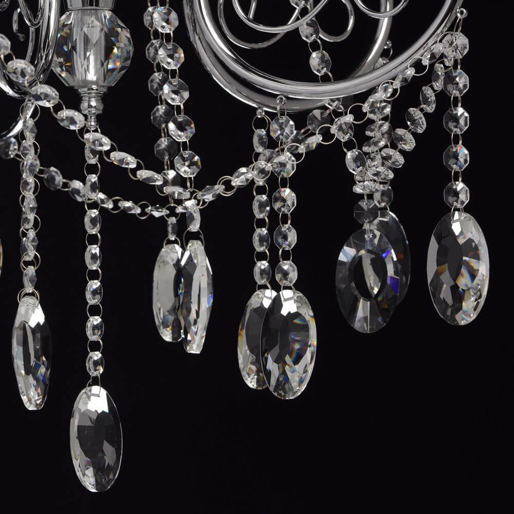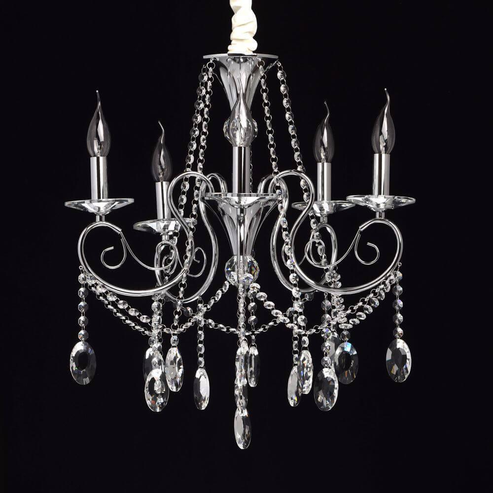 Производитель светильника рекомендует для устройства 5 ламп накаливания с цоколем E14 и мощностью 40 W, что позволит осветить помещение площадью 11,1 кв.м. Габариты изделия: высота – 940 мм, диаметр – 560 мм.