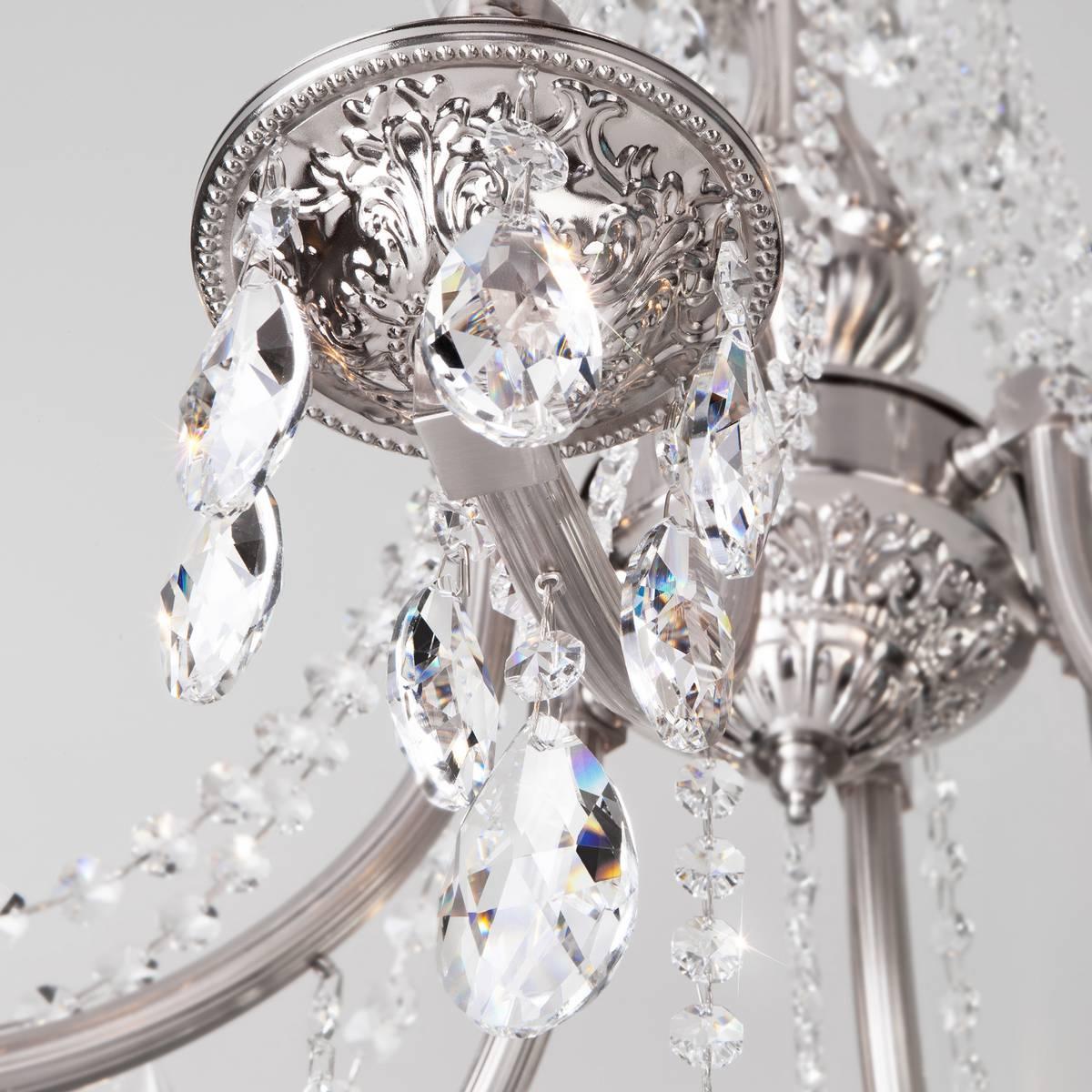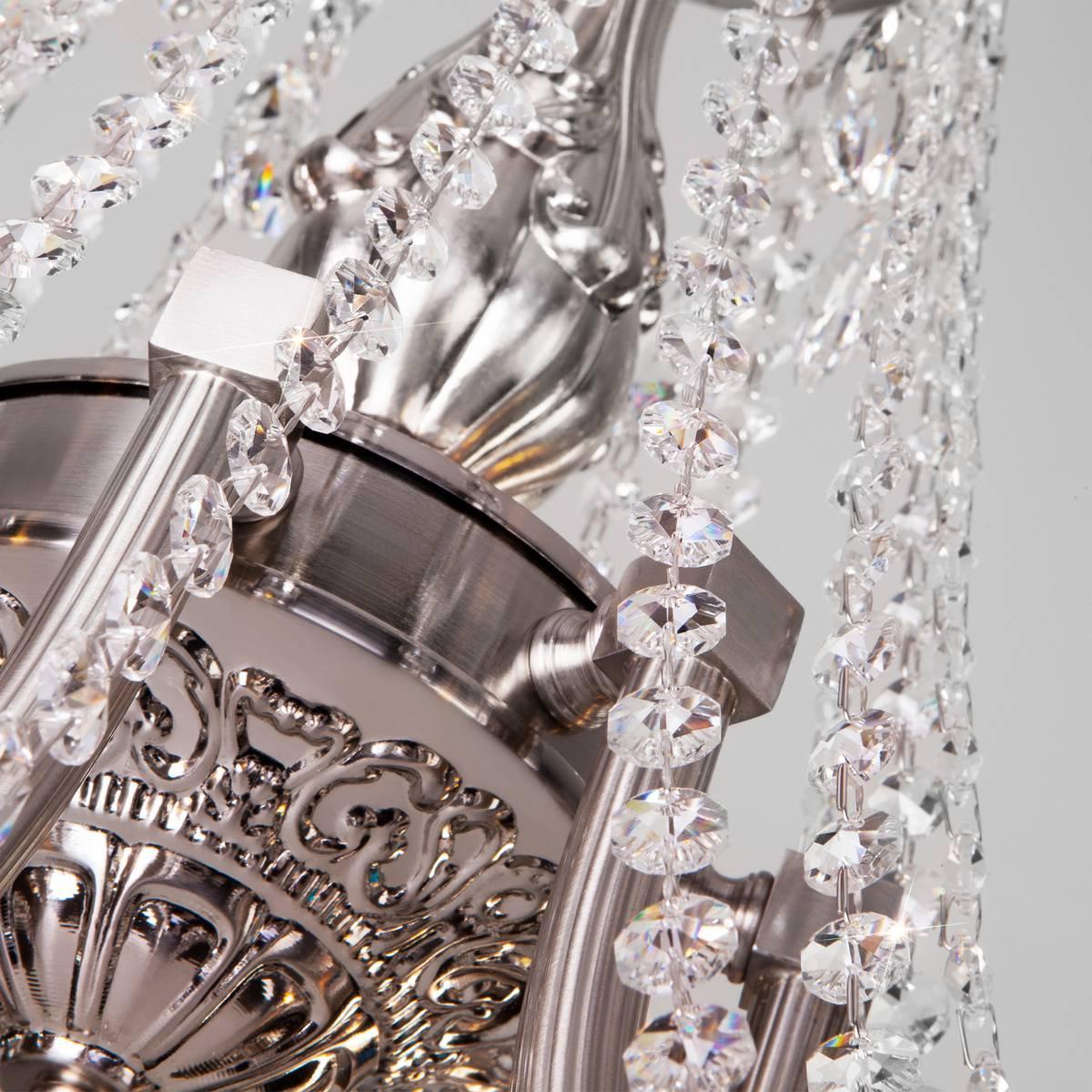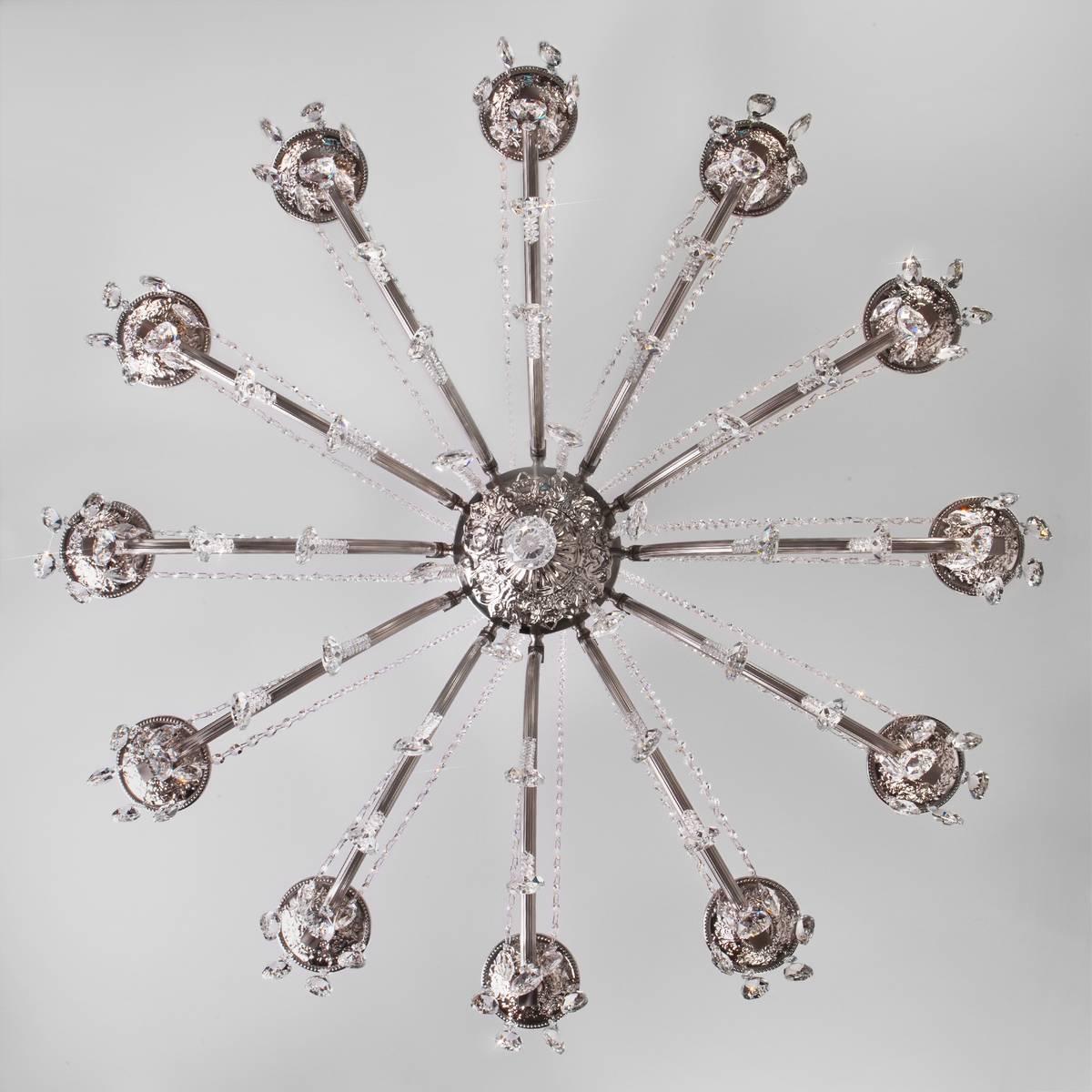 Производитель светильника рекомендует для устройства 12 ламп накаливания с цоколем E14 и мощностью 60 W, что позволит осветить помещение площадью 48 кв.м. Габариты изделия: высота – 740 мм, диаметр – 1000 мм.