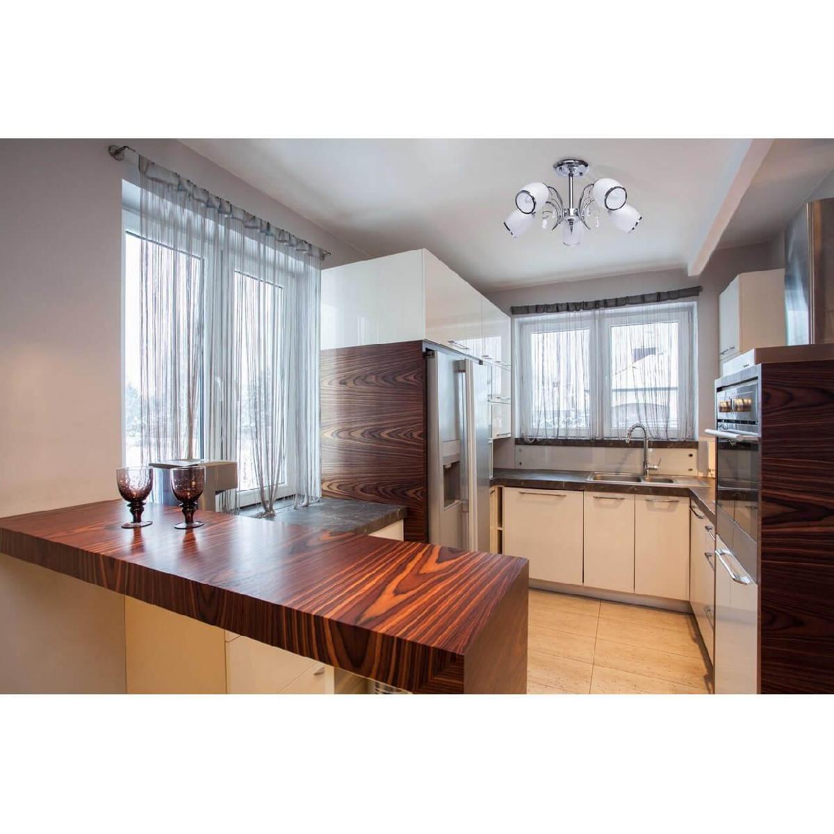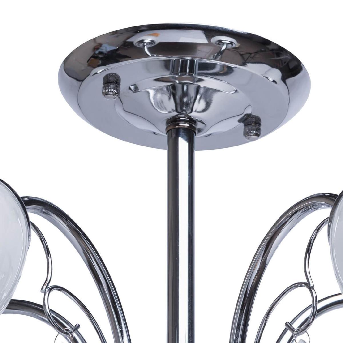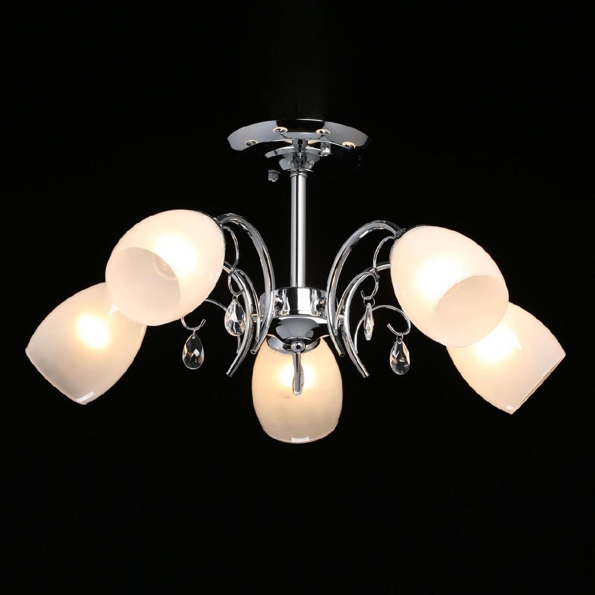 Производитель светильника рекомендует для устройства 5 ламп накаливания с цоколем E27 и мощностью 60 W, что позволит осветить помещение площадью 17 кв.м. Габариты изделия: высота – 250 мм, диаметр – 500 мм.
