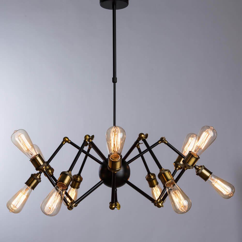 Производитель светильника рекомендует для устройства 12 ламп накаливания с цоколем E27 и мощностью 40 W, что позволит осветить помещение площадью 26 кв.м. Габариты изделия: высота – 600 мм, диаметр – 700 мм.