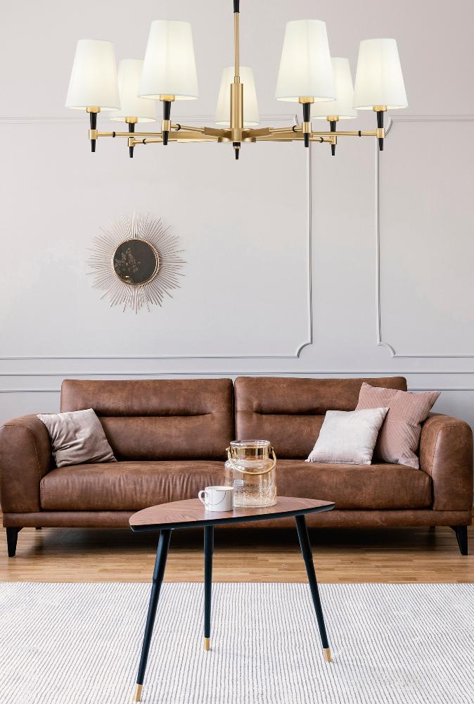Производитель светильника рекомендует для устройства 7 ламп накаливания с цоколем E14 и мощностью 40 W, что позволит осветить помещение площадью 15,6 кв.м. Габариты изделия: высота – 505 мм, диаметр – 880 мм.