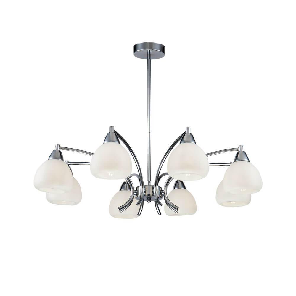 Производитель светильника рекомендует для устройства 8 ламп накаливания с цоколем E14 и мощностью 40 W, что позволит осветить помещение площадью 17,8 кв.м. Габариты изделия: высота – 475 мм, диаметр – 710 мм.