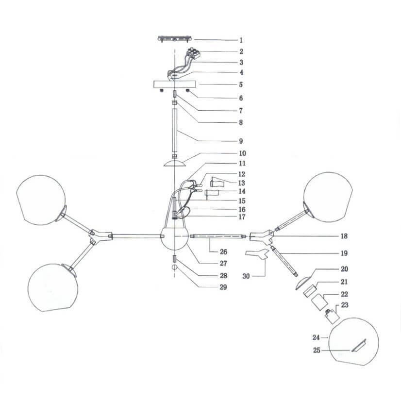 Производитель светильника рекомендует для устройства 6 ламп накаливания с цоколем E27 и мощностью 40 W, что позволит осветить помещение площадью кв.м. Габариты изделия: высота – 380 мм, диаметр – 940 мм.