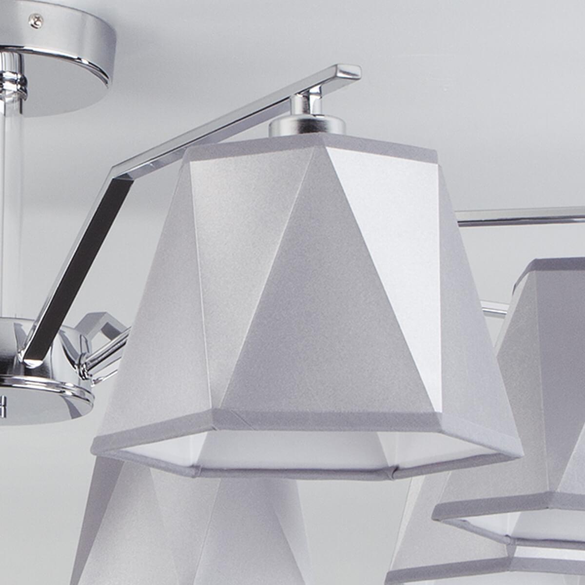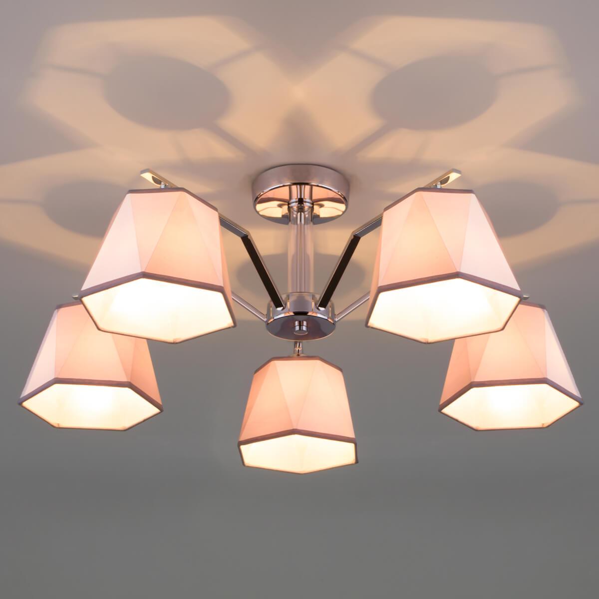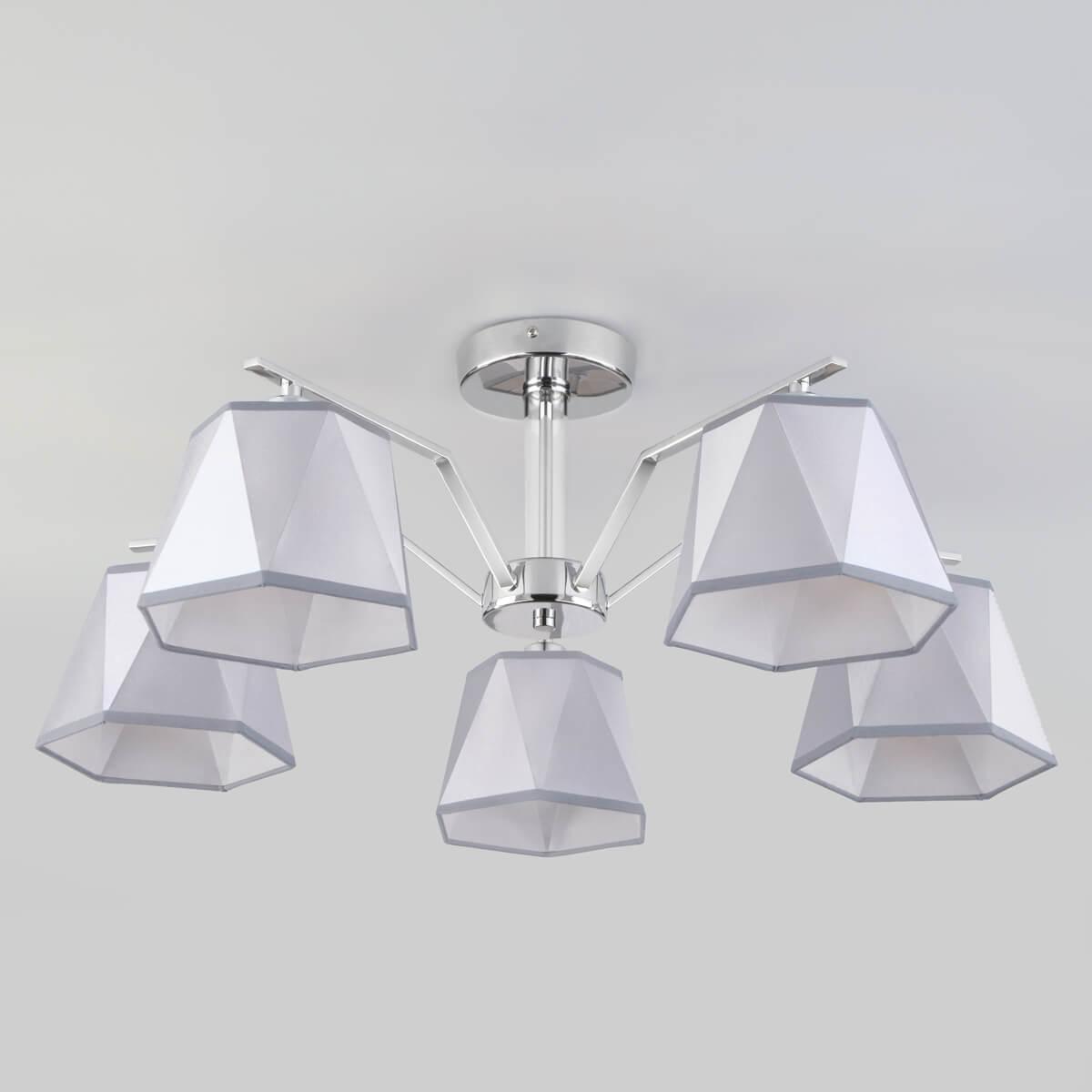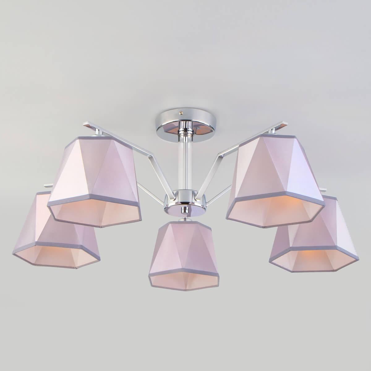 Потолочная люстра Eurosvet 60076/5 хром от Китайского бренда из коллекции Corner будет удачно смотреться в спальни в неоклассическом стиле. Светильник выполнен из ткани с плафонами в форме серебрянного цвета.