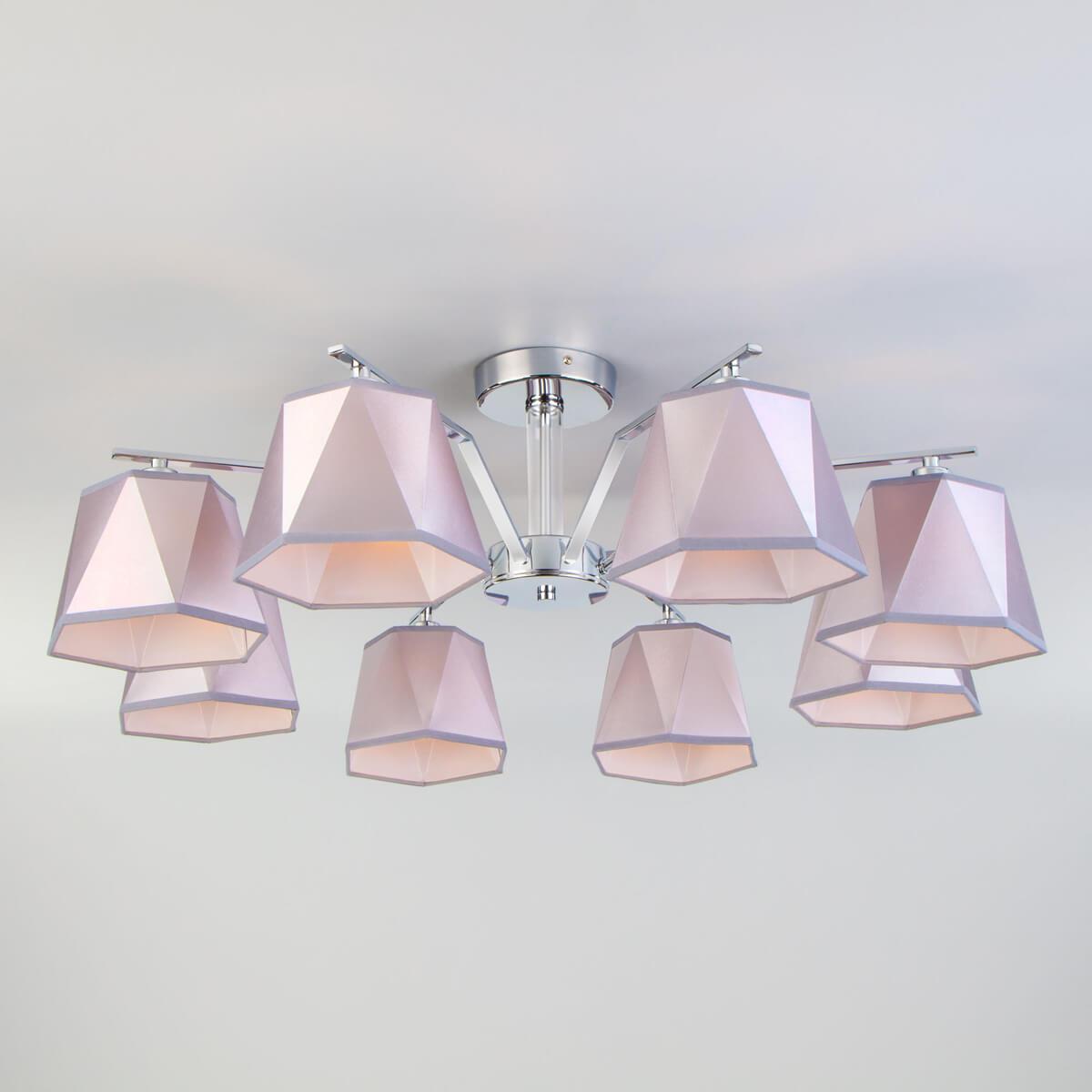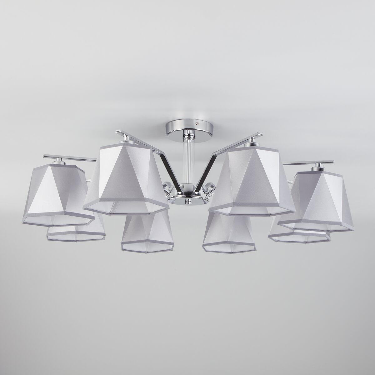Потолочная люстра Eurosvet 60076/8 хром от Китайского бренда из коллекции Corner будет удачно смотреться в гостиной в неоклассическом стиле. Светильник выполнен из ткани с плафонами в форме серебрянного цвета.