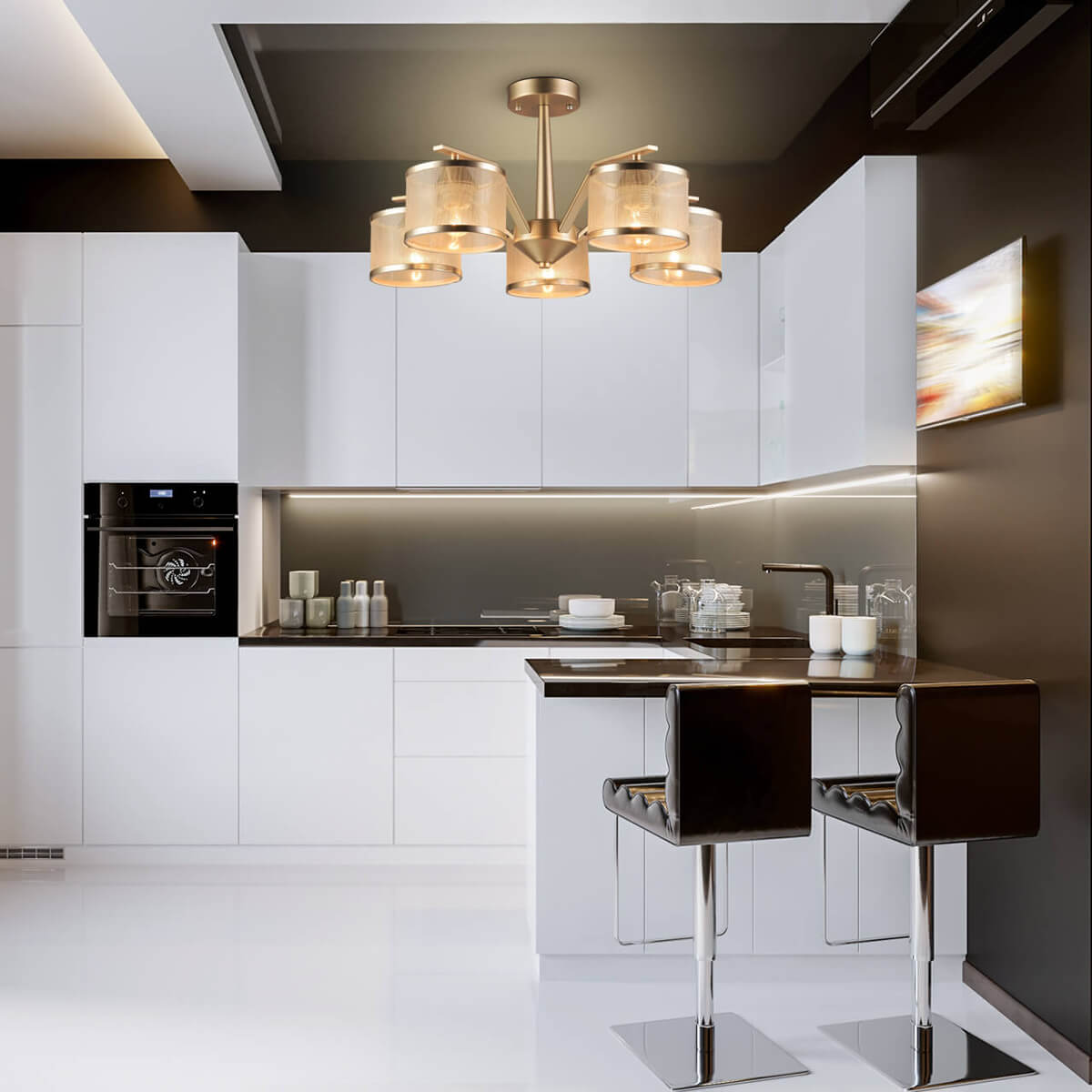 Потолочная люстра F-Promo Bonbon 2488-5P от Немецкого бренда F-Promo из коллекции Bonbon будет удачно смотреться в спальни в стиле модерн. Светильник выполнен из ткани с плафонами в форме цилиндра залотого цвета.