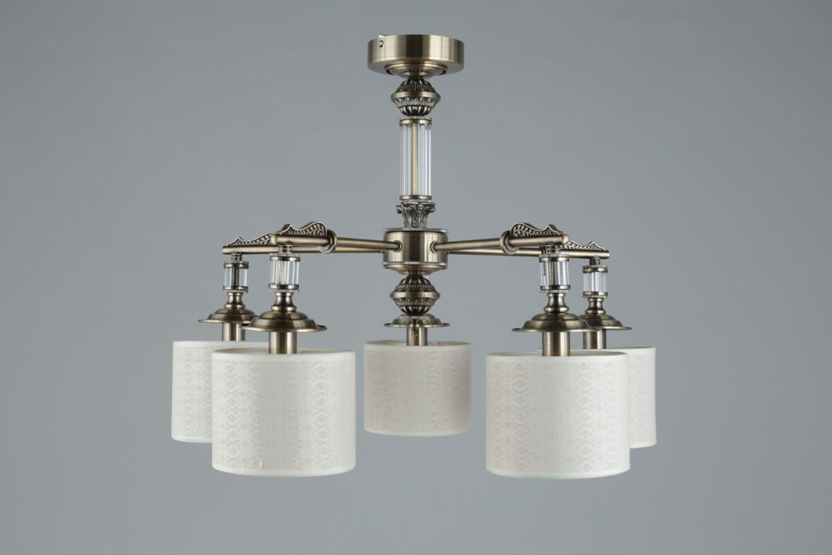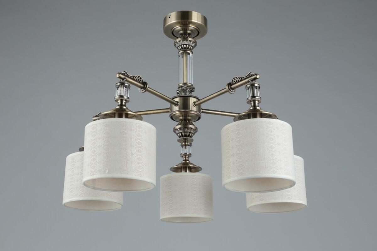Производитель светильника рекомендует для устройства 5 ламп накаливания с цоколем E14 и мощностью 40 W, что позволит осветить помещение площадью 12 кв.м. Габариты изделия: высота – 500 мм, диаметр – 640 мм.