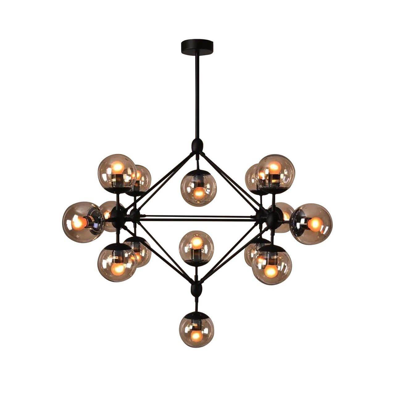 Производитель светильника рекомендует для устройства 15 ламп накаливания с цоколем E27 и мощностью 40 W, что позволит осветить помещение площадью 20 кв.м. Габариты изделия: высота – 1100 мм, диаметр – мм.
