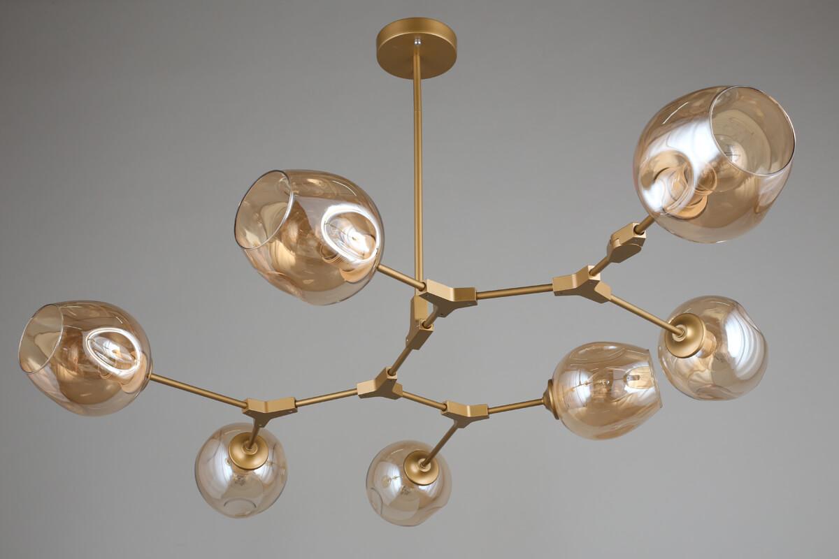Потолочная люстра Omnilux Asolo OML-93907-07 от Китайского бренда из коллекции Asolo будет удачно смотреться в гостиной в лофт стиле. Светильник выполнен из стекла с плафонами в форме янтарного цвета.