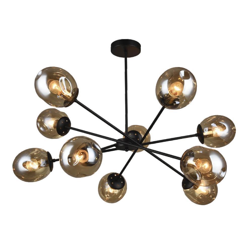 Производитель светильника рекомендует для устройства 10 ламп накаливания с цоколем E27 и мощностью 60 W, что позволит осветить помещение площадью 30 кв.м. Габариты изделия: высота – 560 мм, диаметр – 880 мм.
