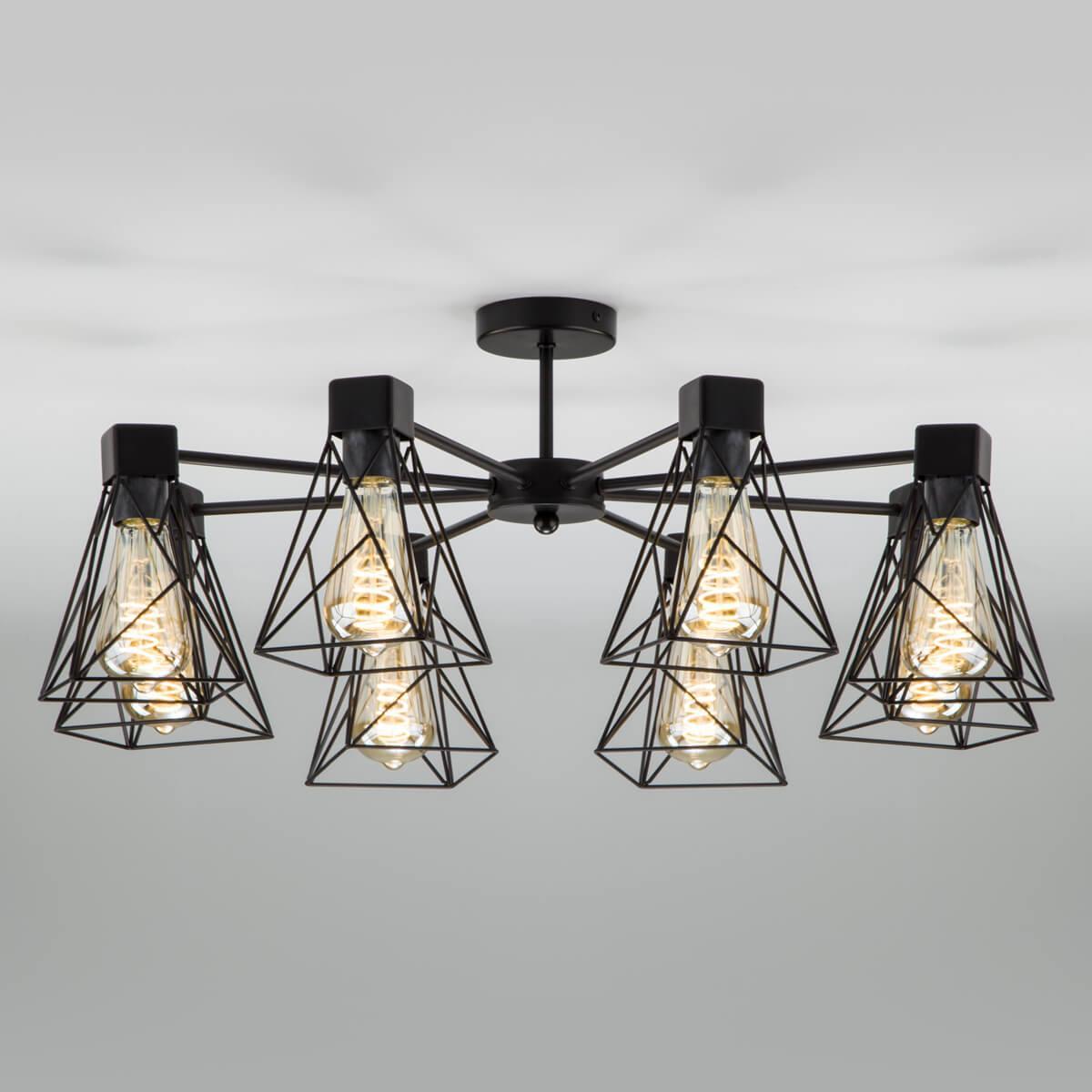 Потолочная люстра Eurosvet 70107/8 черный от Китайского бренда из коллекции Trappola будет удачно смотреться в гостиной в хай-тек стиле. Светильник выполнен из металла с плафонами в форме черного цвета.