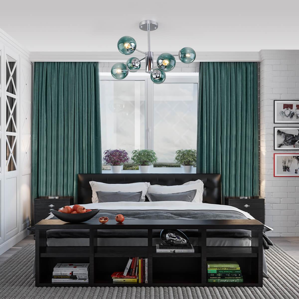 Потолочная люстра Eurosvet Ascot 30166/6 хром от Китайского бренда из коллекции Ascot будет удачно смотреться в гостиной в современном стиле. Светильник выполнен из стекла с плафонами в форме зеленого цвета.