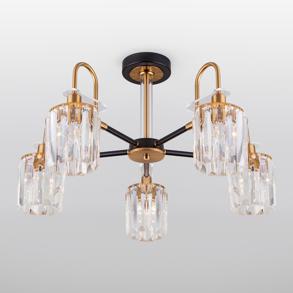 Потолочная люстра Eurosvet Tenia 70090/5 черный от Китайского бренда из коллекции Tenia будет удачно смотреться в гостиной в стиле модерн. Светильник выполнен из хрусталя с плафонами в форме прозрачного цвета.