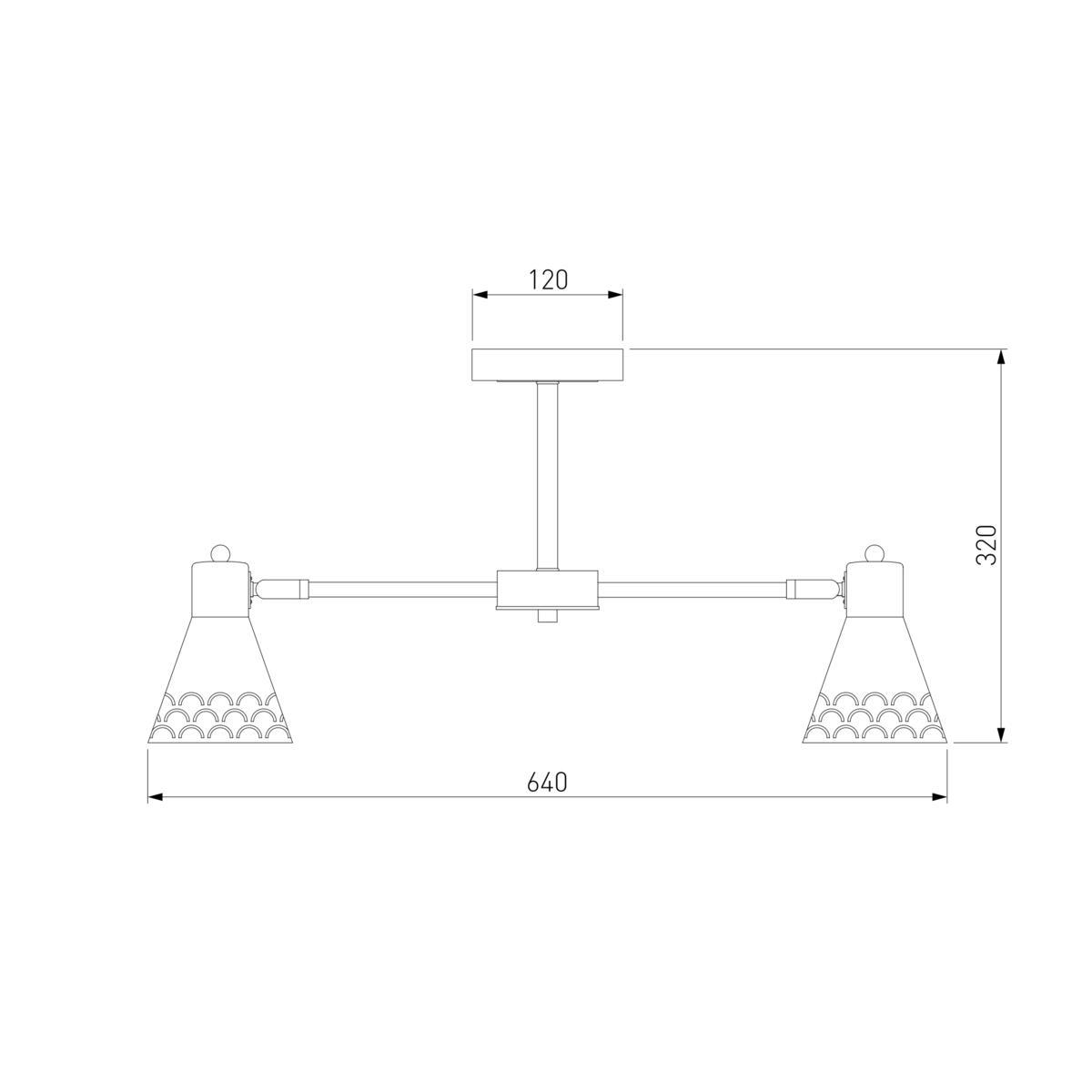 Производитель светильника рекомендует для устройства 6 ламп накаливания с цоколем E14 и мощностью 60 W, что позволит осветить помещение площадью 20 кв.м. Габариты изделия: высота – 320 мм, диаметр – 640 мм.